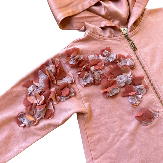 Felpa full zip con fiori e cappuccio in raso Twin Set - 8 anni