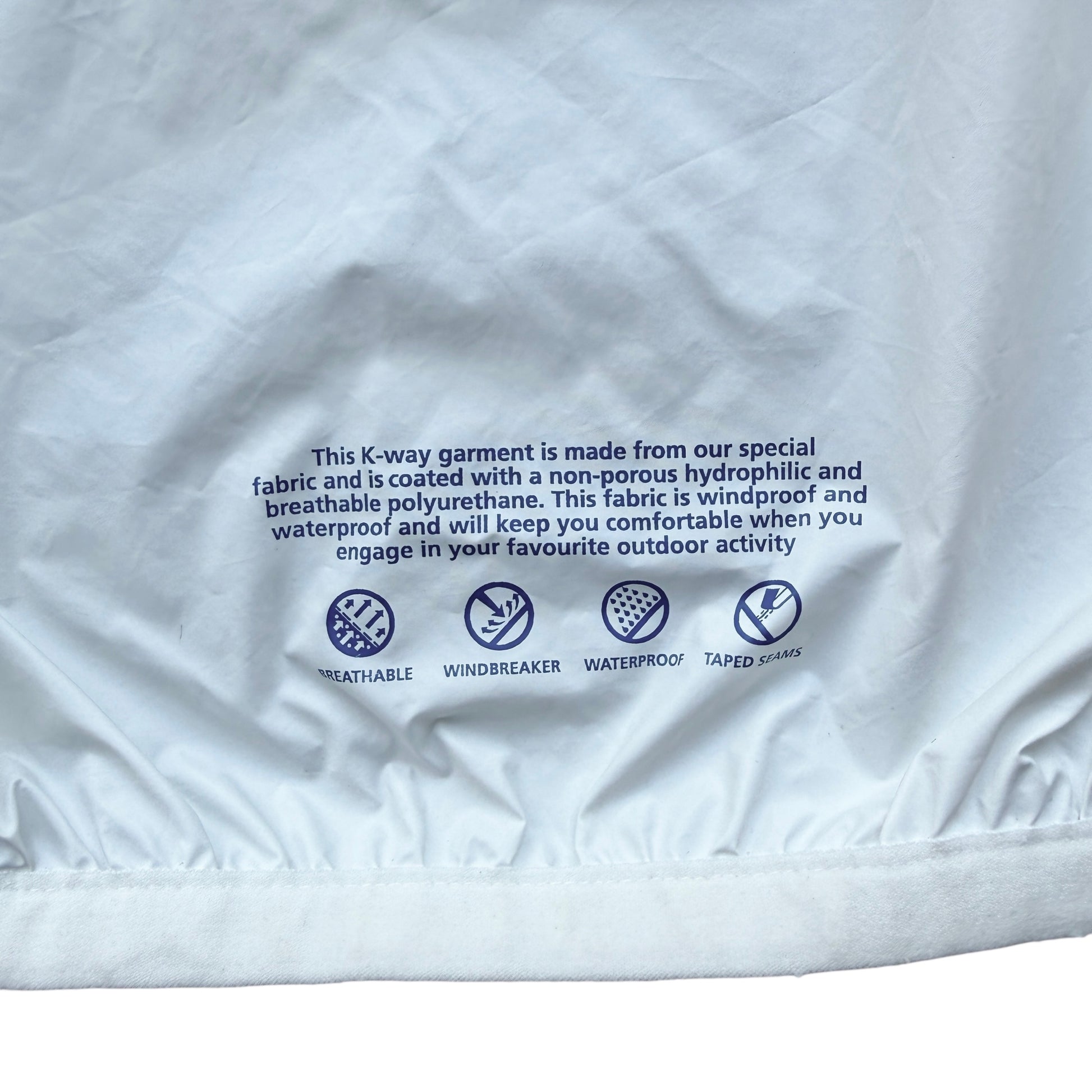 Nota sulle Condizioni: Il capo è in ottime condizioni estetiche esterne. Segnaliamo, per massima trasparenza, che le cuciture termonastrate interne all'altezza del cappuccio presentano un leggero scurimento fisiologico (caratteristico dei modelli K-Way chiari con il passare del tempo), che non pregiudica in alcun modo l'impermeabilità o l'estetica del capo indossato.