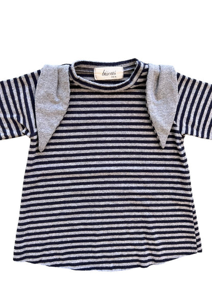 Delightful Bisous sweater size 3 months with a playful touch: cute ears adorn the shoulders. Made with care and love, this shirt embraces comfort and style for little ones. An irresistible garment that adds a touch of sweetness to your child's wardrobe.