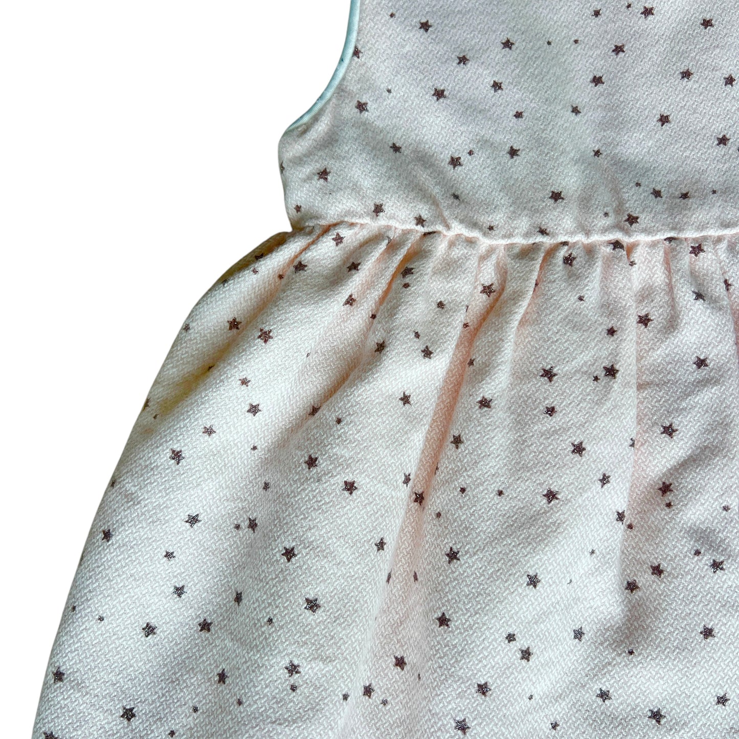 Abito Gaialuna Precious per bambina 24 mesi, in delicato rosa cipria con micro stelline glitterate discrete. Colletto rotondo e gonna ampia per un look dolce e raffinato, perfetto anche per cerimonie o occasioni speciali. Eleganza e comfort in un capo prezioso e incantevole, pensato per piccole principesse.