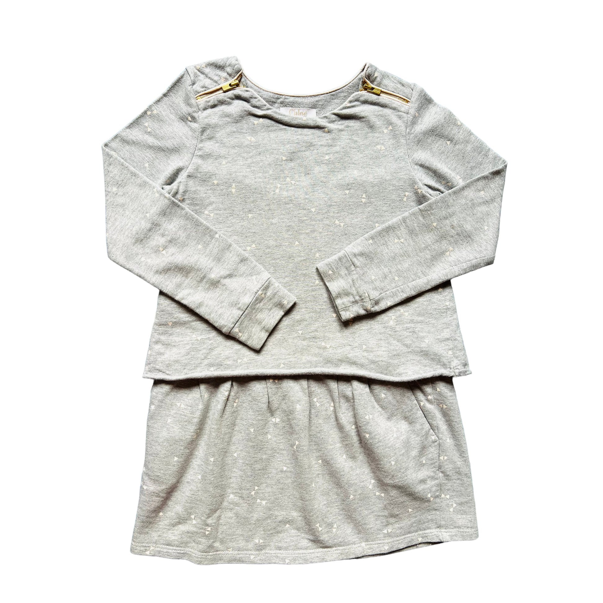 Questo abito in felpa garzata di Chloè con maniche lunghe è la scelta perfetta per uno stile comodo ma originale allo stesso tempo. Realizzato con un tessuto morbido e confortevole, questo capo offre un look casual senza rinunciare allo stile. Ideale per un look informale e rilassato, è la soluzione trendy per un comfort senza compromessi. Taglia 5/6 anni