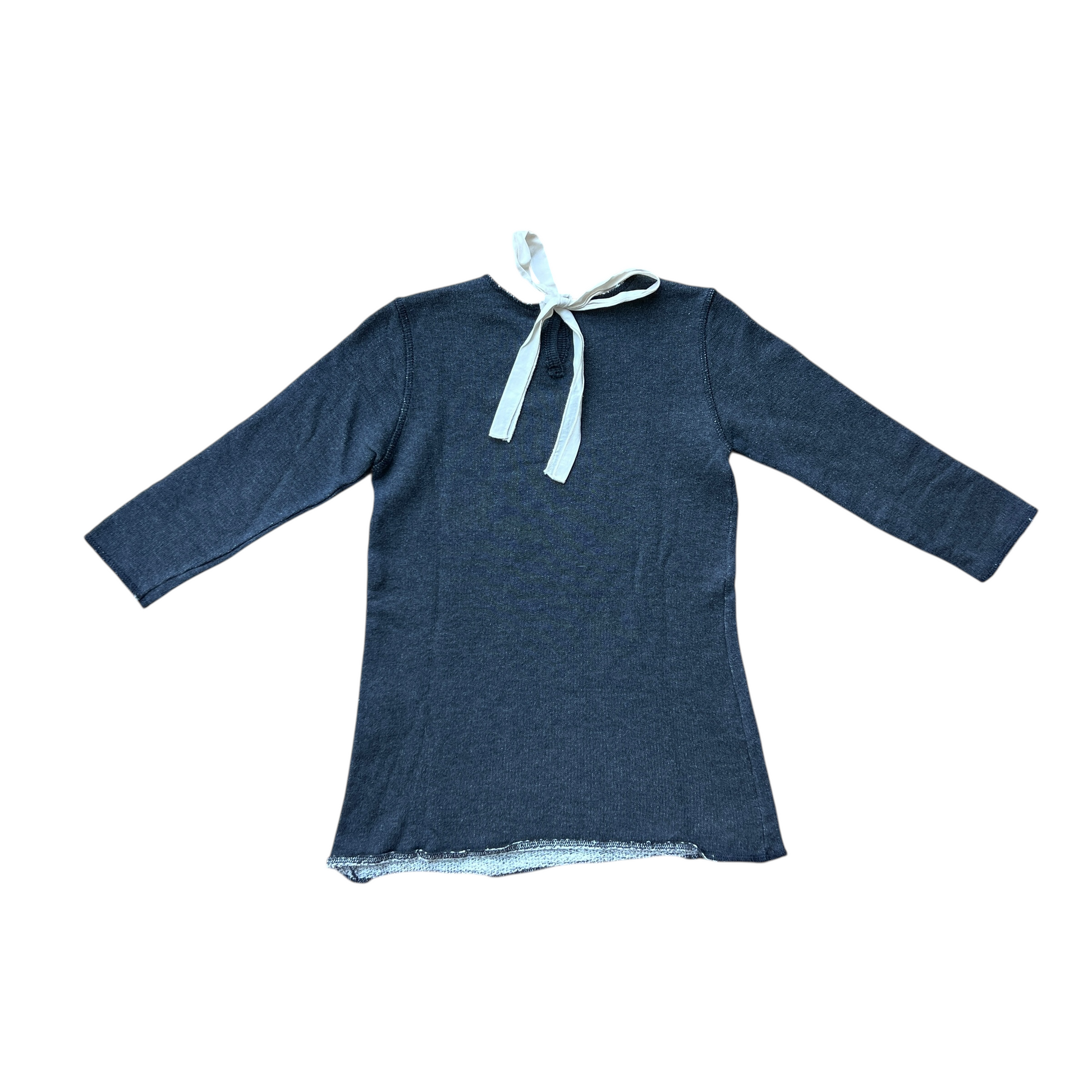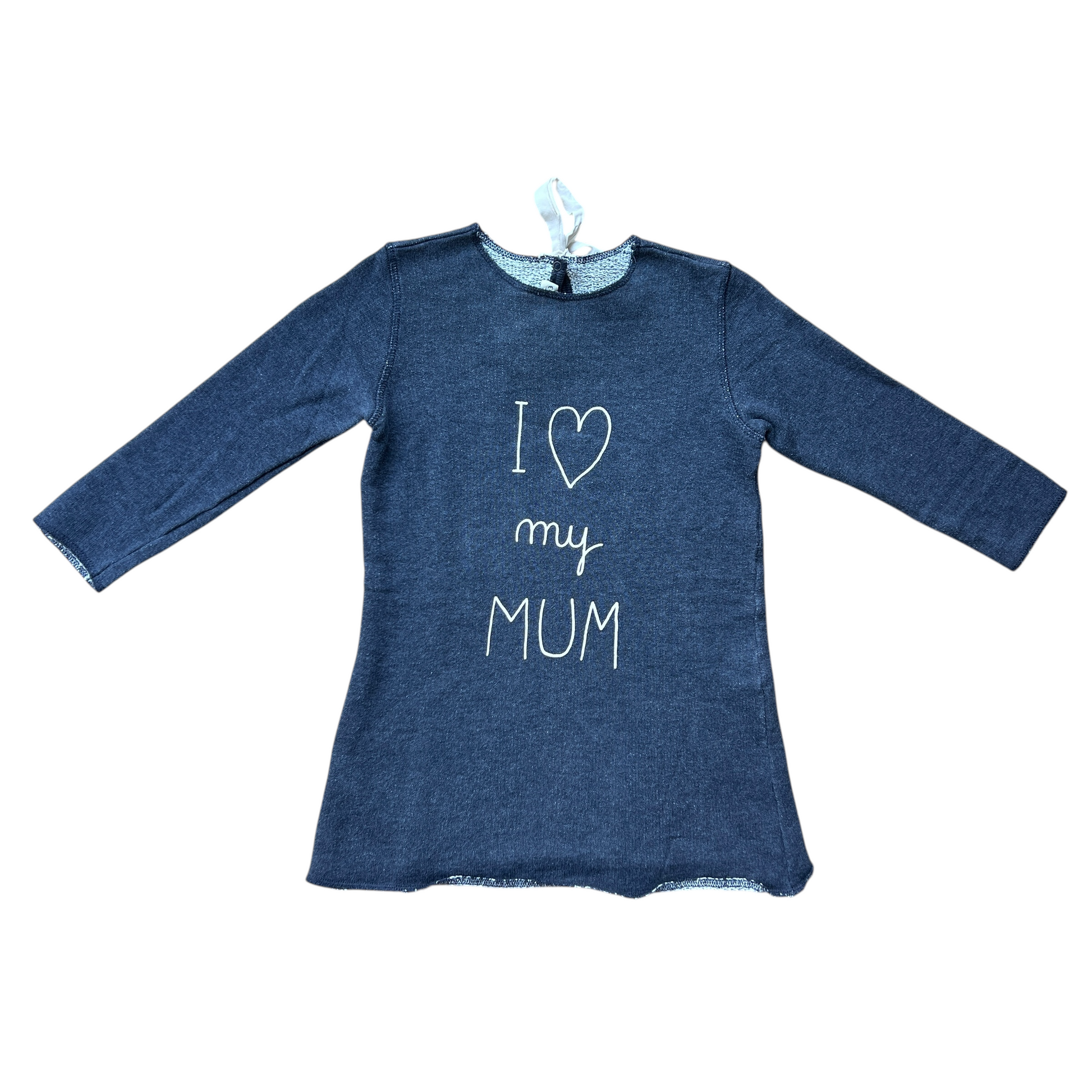 Abito Babe&Tess per bambina di 24 mesi, in morbida felpa garzata grigio melange. Delicato fiocco beige sul retro del collo e dolce scritta “I love my mum” in beige sul petto. Comodo, caldo e tenero, perfetto per la stagione più fresca e per un look affettuoso e raffinato.