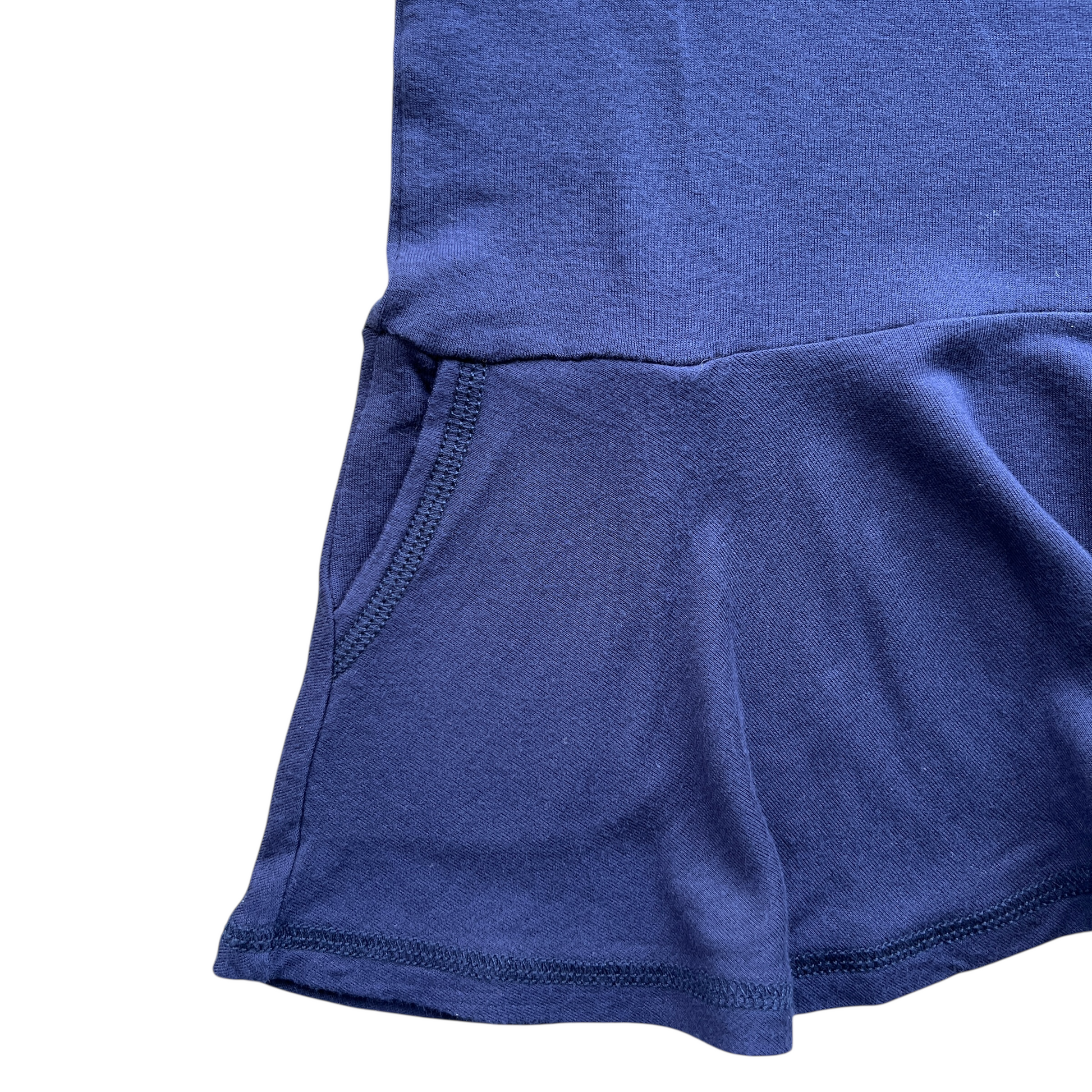 Abito in jersey Ralph Lauren per bambina di 3 anni, in morbido cotone blu. Modello confortevole con gonna ampia e taglio svasato. Sul petto, due cuori ricamati con le iniziali R e L, dettaglio romantico e iconico. Perfetto per tutti i giorni o per un'occasione speciale con stile.
