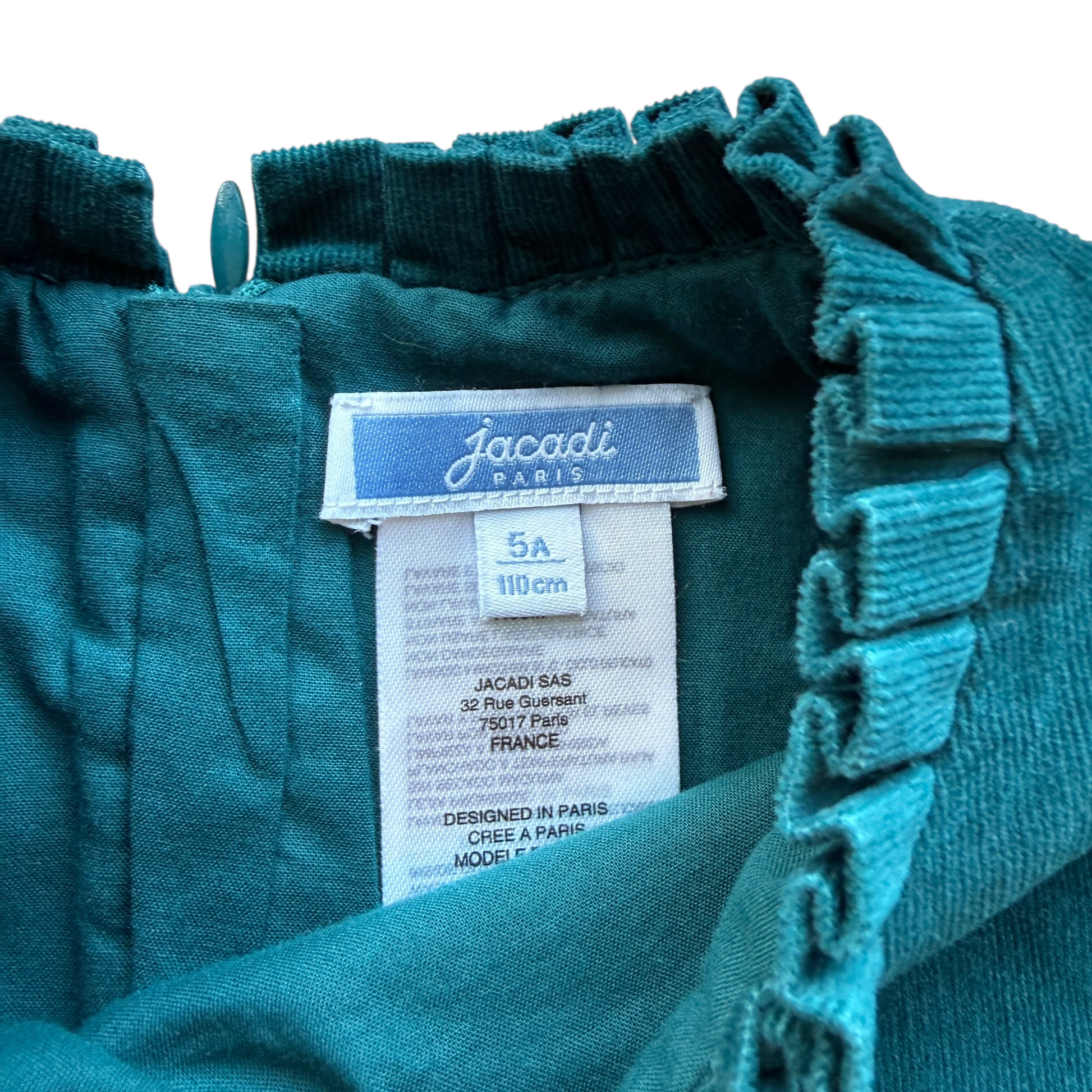 Questo abito in microvelluto color petrolio firmato Jacadi è perfetto per un look elegante e confortevole. Morbido al tatto e curato nei dettagli, offre una vestibilità impeccabile e uno stile senza tempo. Ideale per occasioni speciali o per aggiungere un tocco chic alla quotidianità. Adatto ai 5 anni.