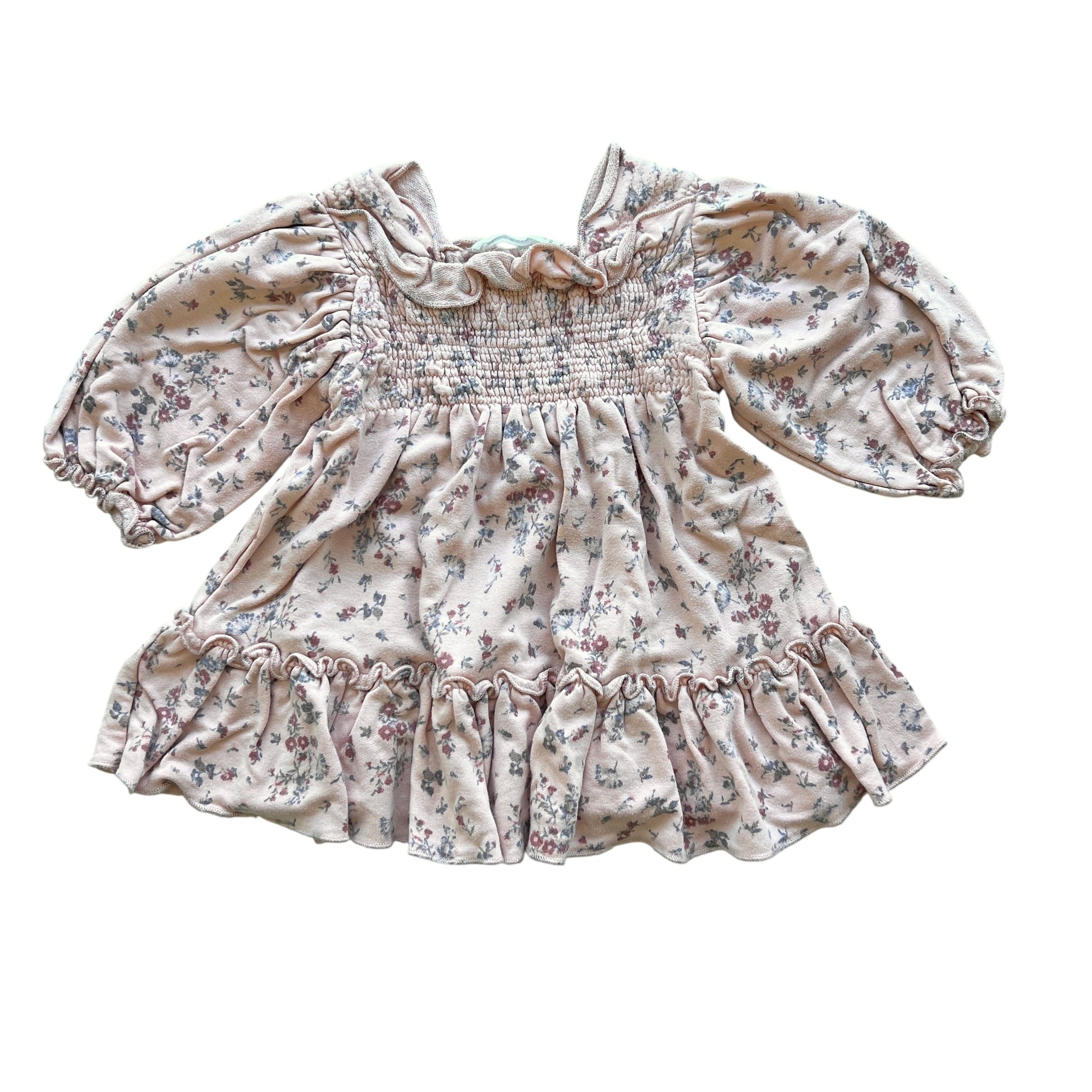 Abito modello Frou Frou Sophie di Bamboom, per bambina 18/24 mesi. Realizzato in una morbida e sostenibile miscela di 70% bambù, 28% cotone e 2% elastane. Il tessuto ecologico è traspirante, antibatterico e delicato sulla pelle. Design rosa con gonna ampia e raffinata lavorazione a punto smock. Eleganza e comfort naturali.