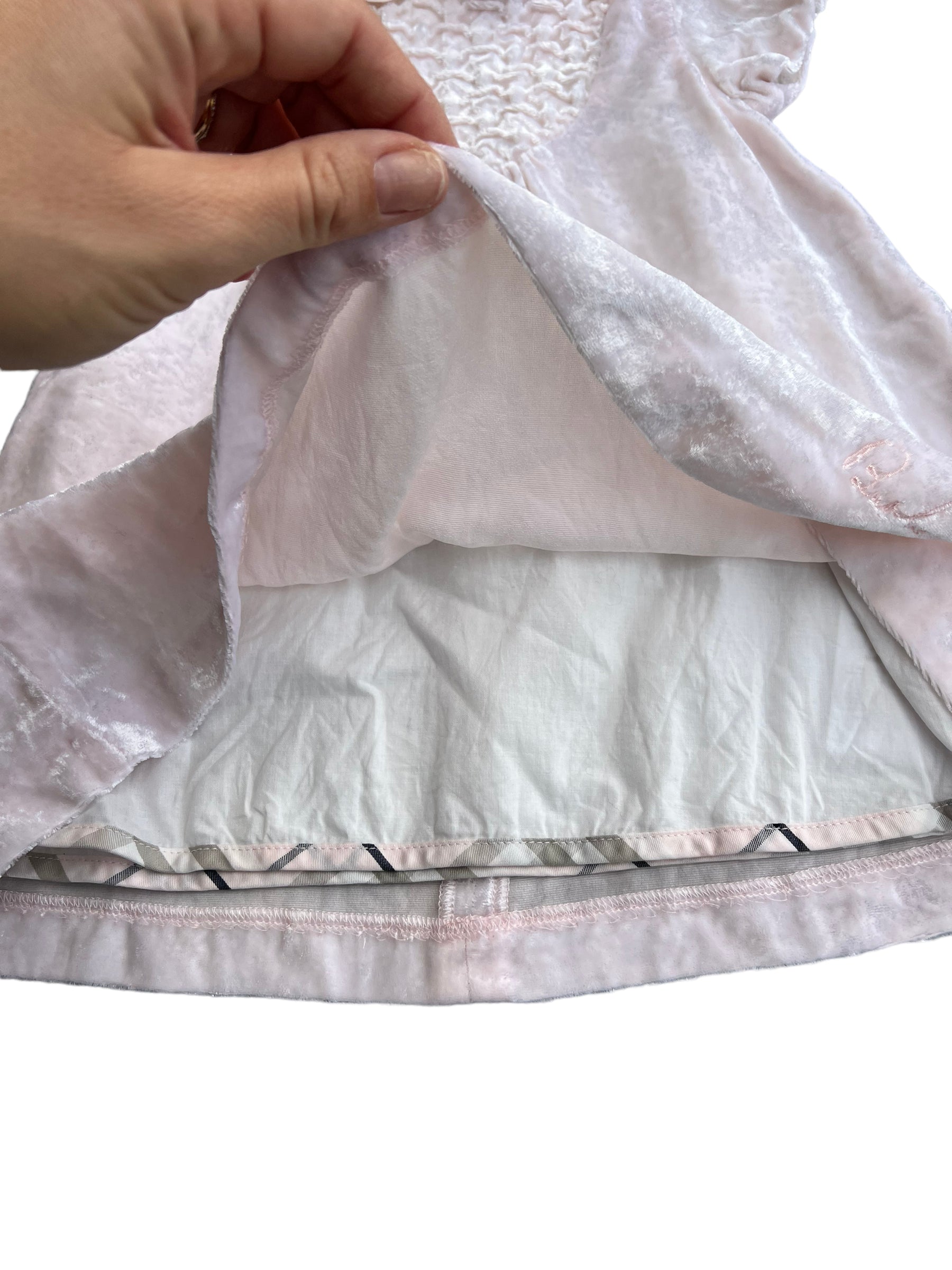 L'abito in velluto rosa di Burberry è un capo incantevole con dettagli raffinati. La lavorazione sul petto aggiunge un tocco di eleganza, creando un design distintivo. Perfetto per le occasioni speciali, questo abito garantisce che la tua piccola si distingua con stile fin dai primi mesi. Taglia 9 mesi