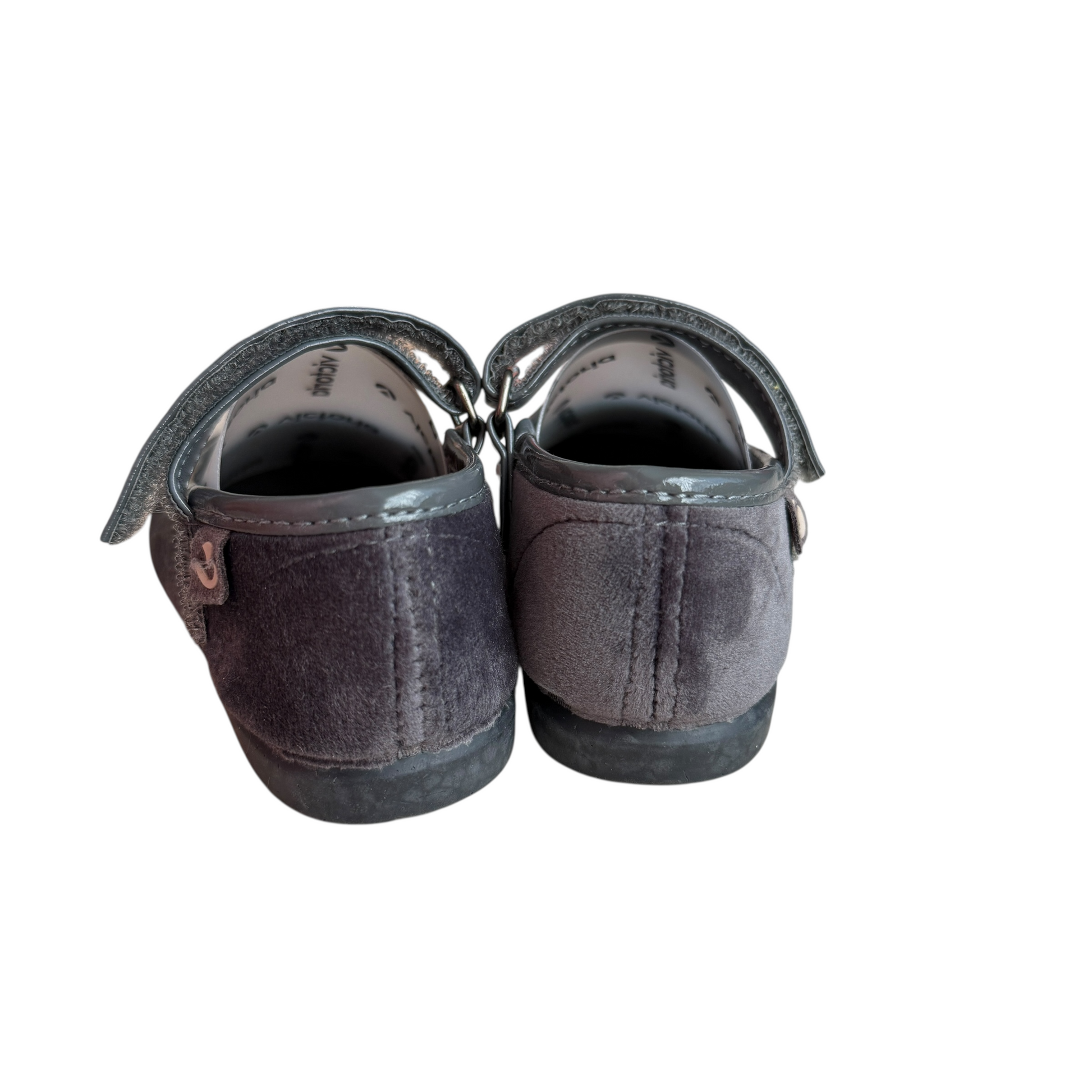 Eleganti e raffinate, queste Mary Jane uniscono velluto grigio morbido e dettagli in vernice per un look classico e senza tempo. Il cinturino regolabile assicura una calzata stabile, mentre la suola flessibile garantisce comfort per tutto il giorno. Modello NUOVO, mai indossato. Perfette per occasioni speciali e outfit quotidiani chic.