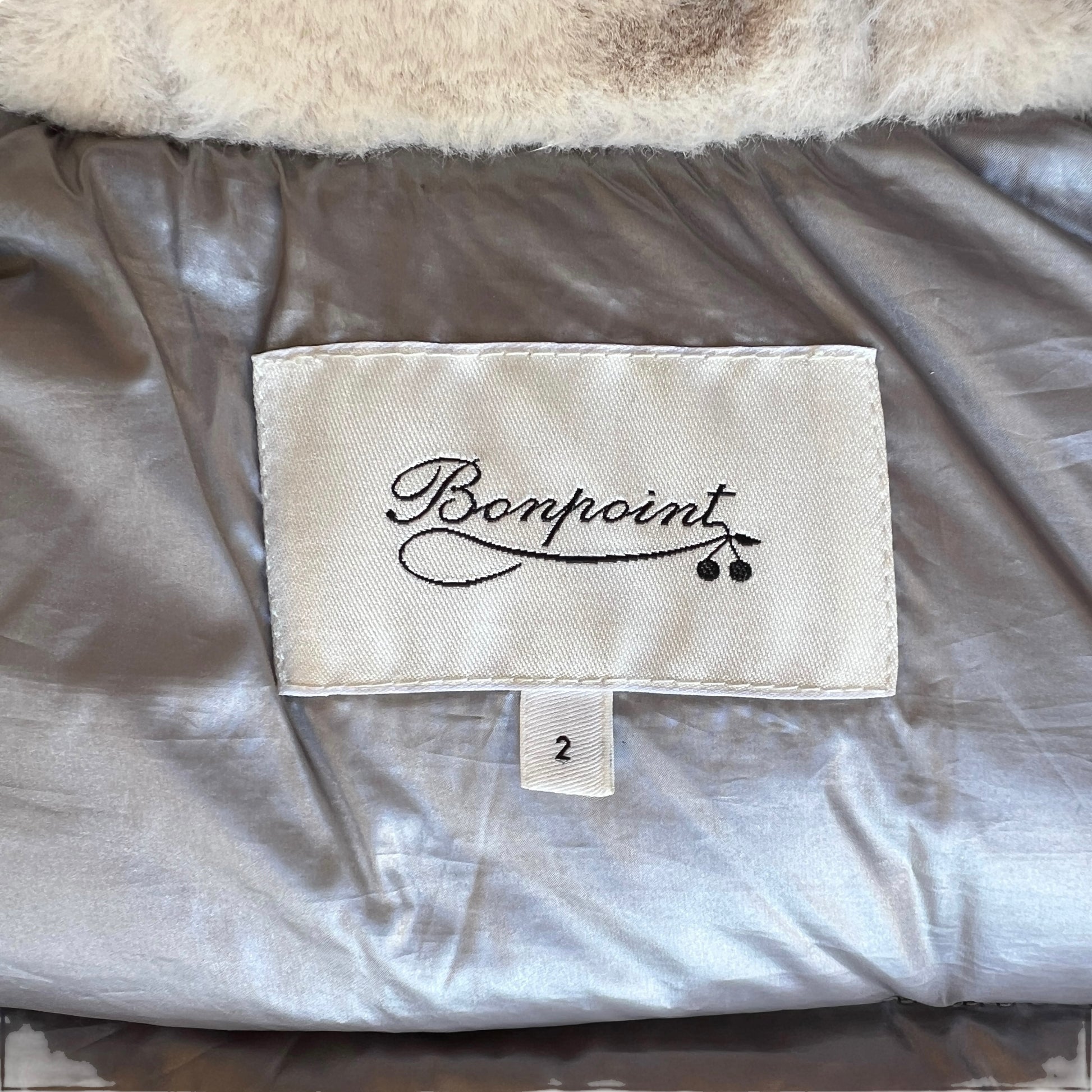 La giacca invernale Bonpoint per 2 anni unisce eleganza e funzionalità. In un raffinato verde ottanio, è impermeabile e dotata di cappuccio con interno in morbido peluche per massimo comfort e calore. Perfetta per proteggere i più piccoli nelle giornate fredde con stile e praticità.