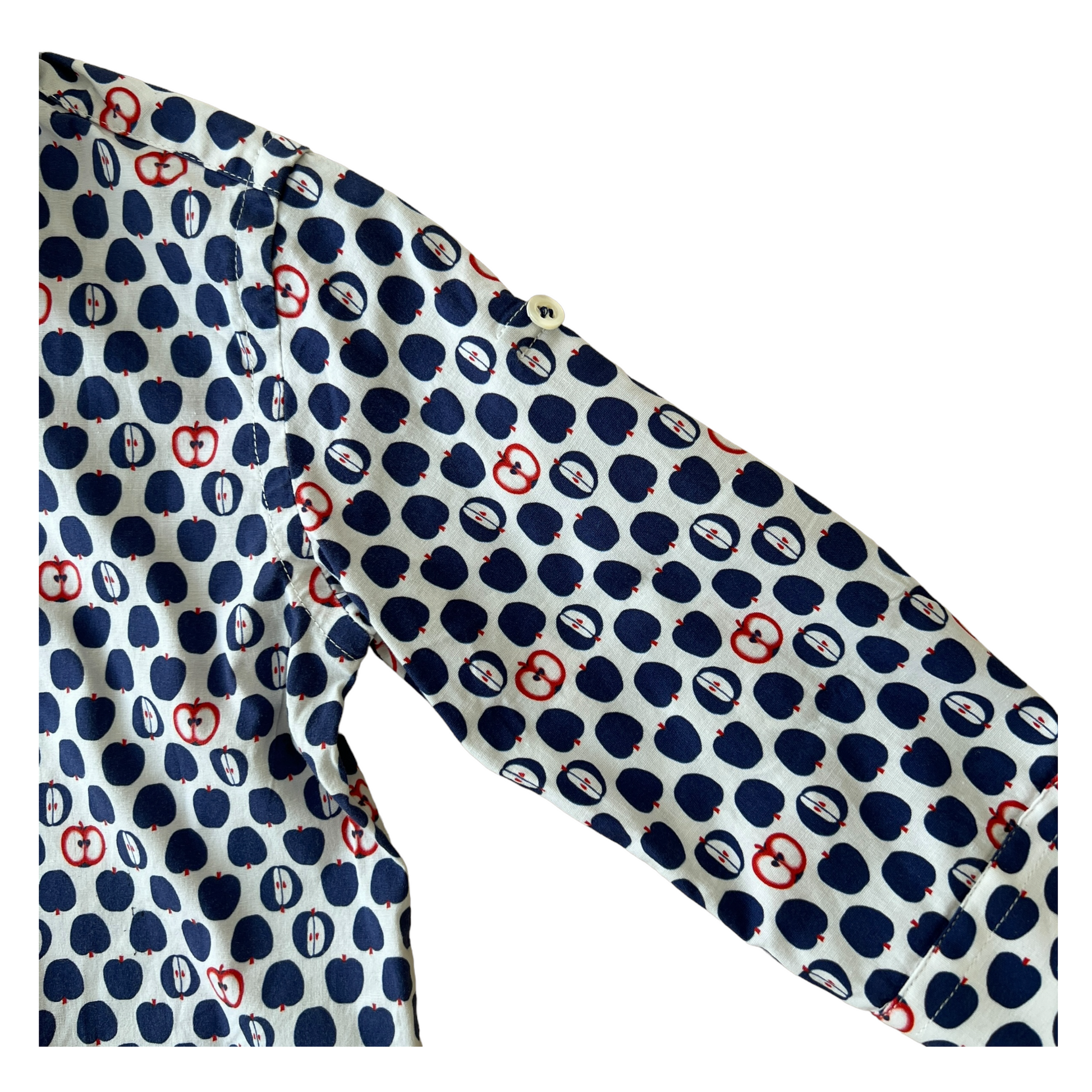Questo set Colorichiari per bambini di 2 anni include una camicia e un papillon coordinati. La camicia presenta una vivace stampa di mele nei toni del blu e rosso, realizzata in cotone leggero per il massimo comfort. Il papillon abbinato aggiunge un tocco elegante, perfetto per occasioni speciali.