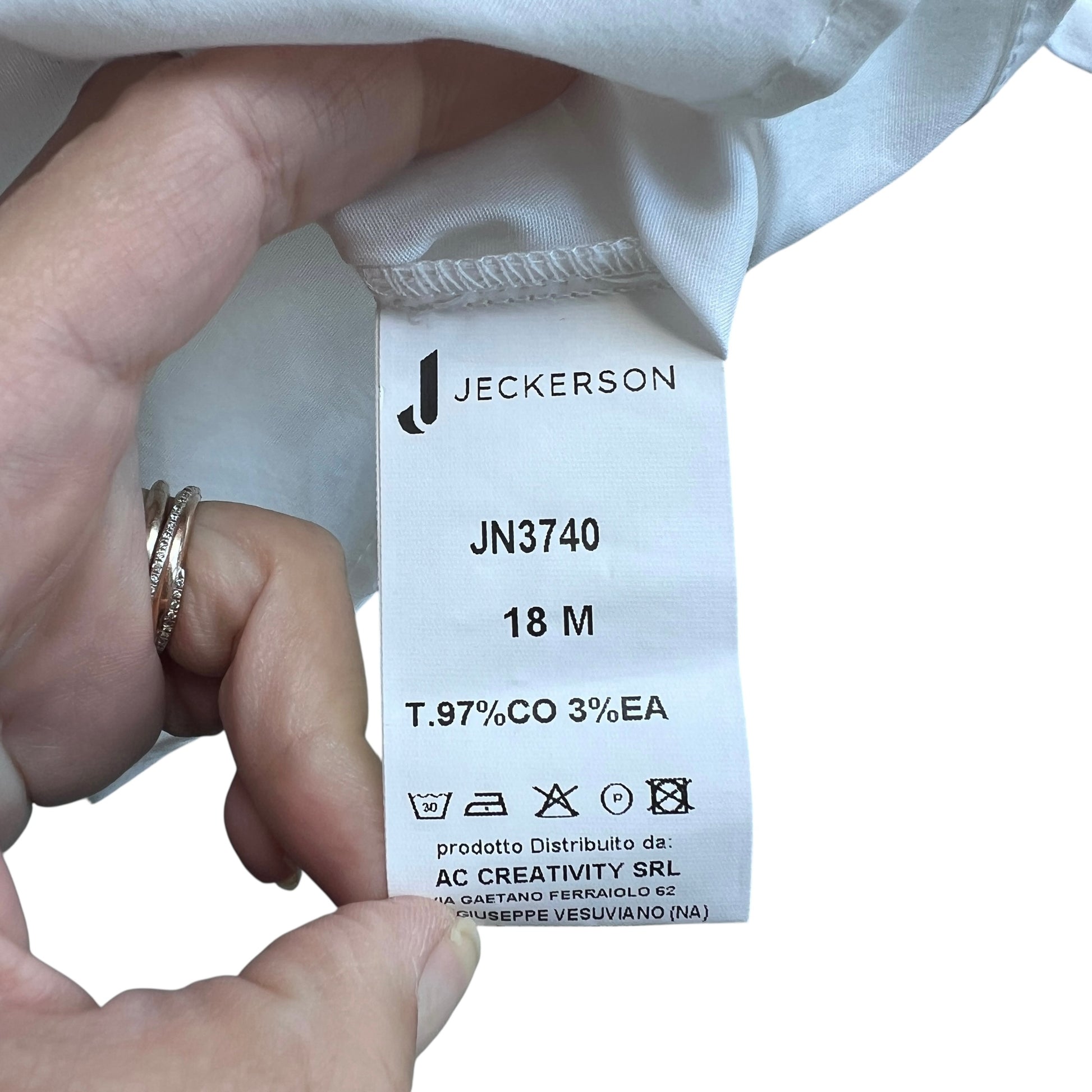 Camicia Jeckerson per bambino di 18 mesi, in puro cotone bianco. Modello classico con colletto e abbottonatura frontale, perfetta per occasioni eleganti o per completare un look curato. Tessuto morbido e confortevole, ideale anche per le pelli più delicate. Uno stile intramontabile in taglia mini.
