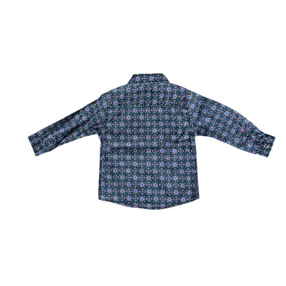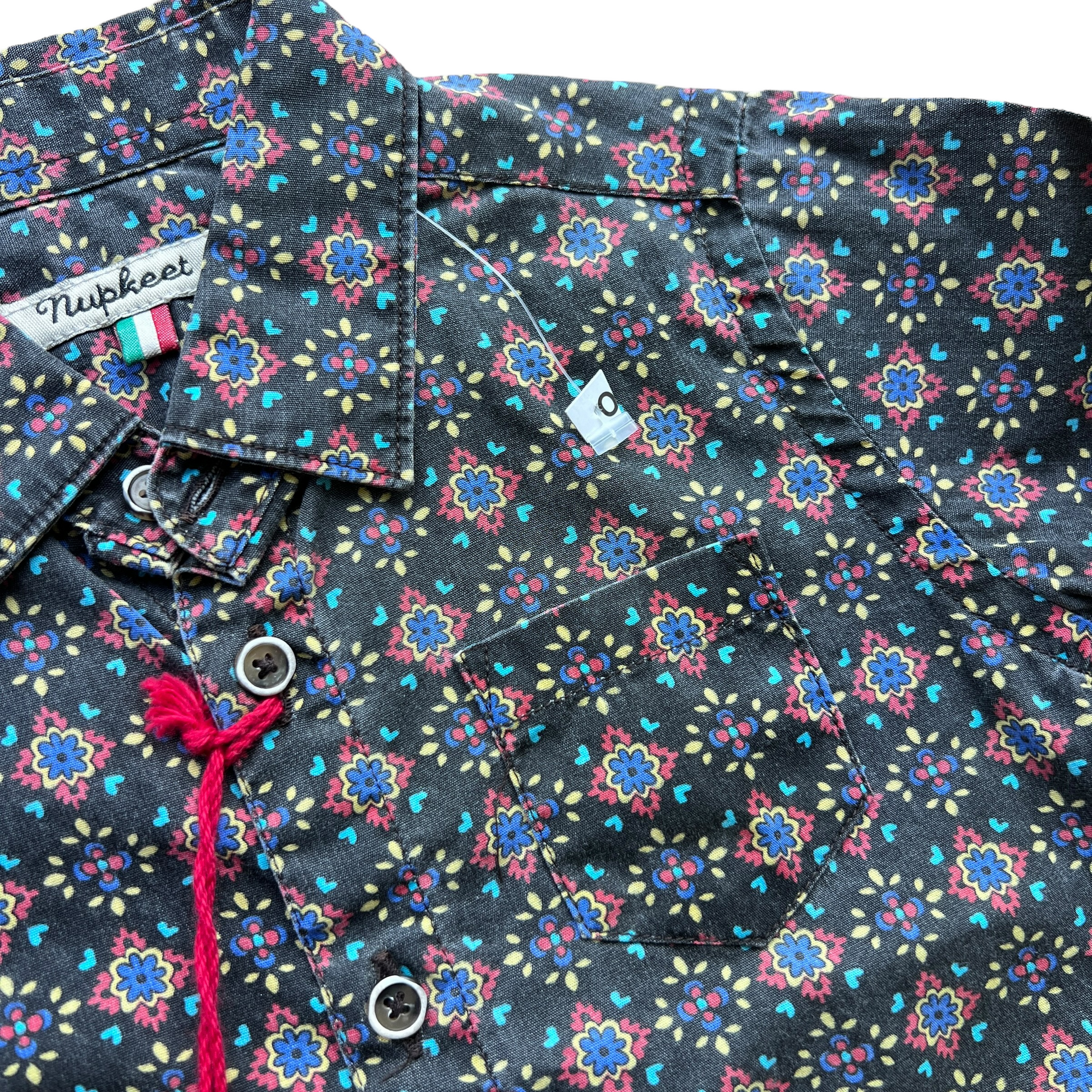 Camicia vintage Nupkeet per bambino 9/12 mesi, in morbido cotone nero con originali fiori stilizzati. Taglio classico con colletto e bottoncini, per un look retrò e di carattere. Perfetta per piccoli outfit dal gusto deciso e ricercato, con un tocco creativo d'altri tempi.