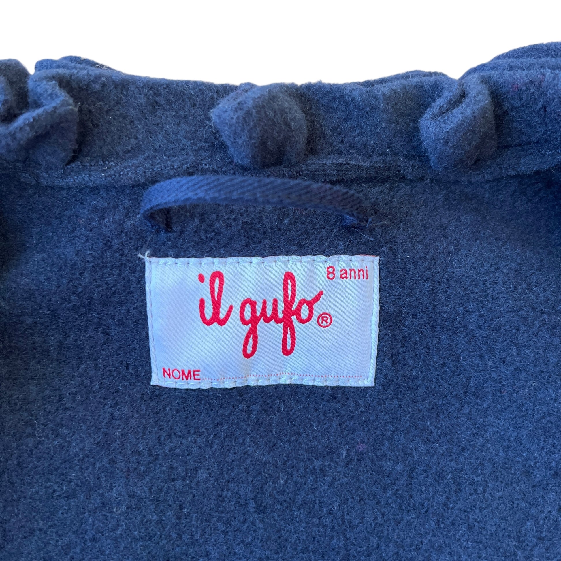 Cappotto morbido e destrutturato per bambina firmato Il Gufo, taglia 8 anni. Realizzato in morbido e caldo pile, è ideale per le giornate fresche. Presenta una vestibilità comoda, con chiusura a bottoni e tasche laterali. Il design semplice e raffinato, unito a dettagli delicati, lo rende perfetto per un look casual ma elegante.
