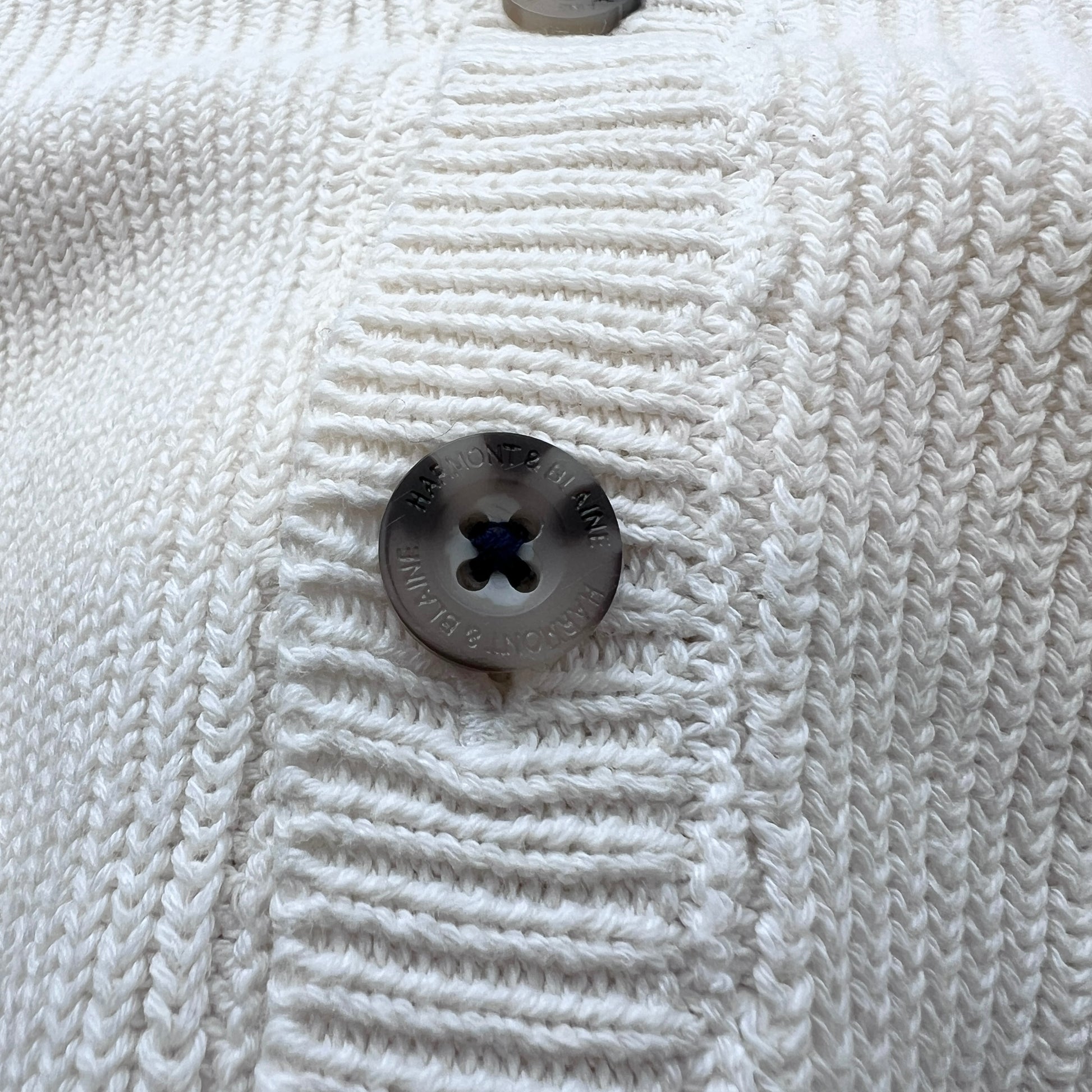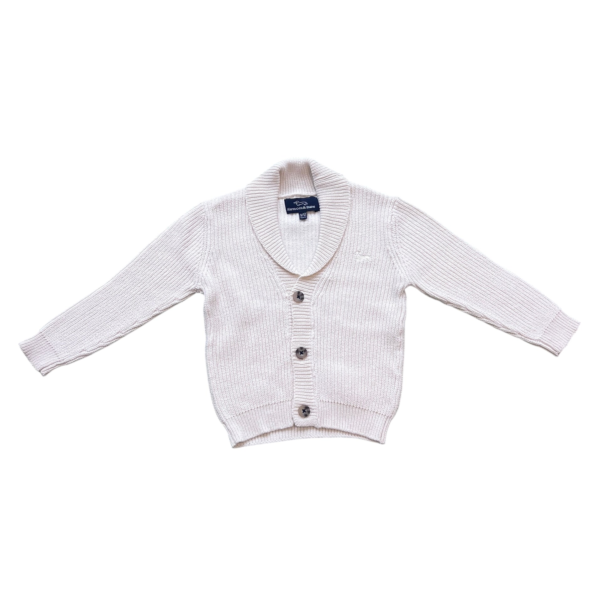 Cardigan Harmont & Blaine per neonato di 9/12 mesi, in morbido cotone color burro. Elegante design con bavero e chiusura frontale con bottoni, impreziosito dal classico stile del brand. Perfetto per completare outfit raffinati con un tocco di comfort e delicatezza.