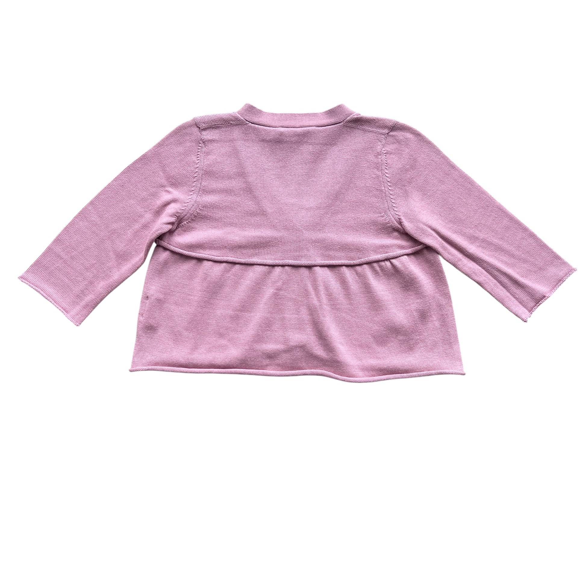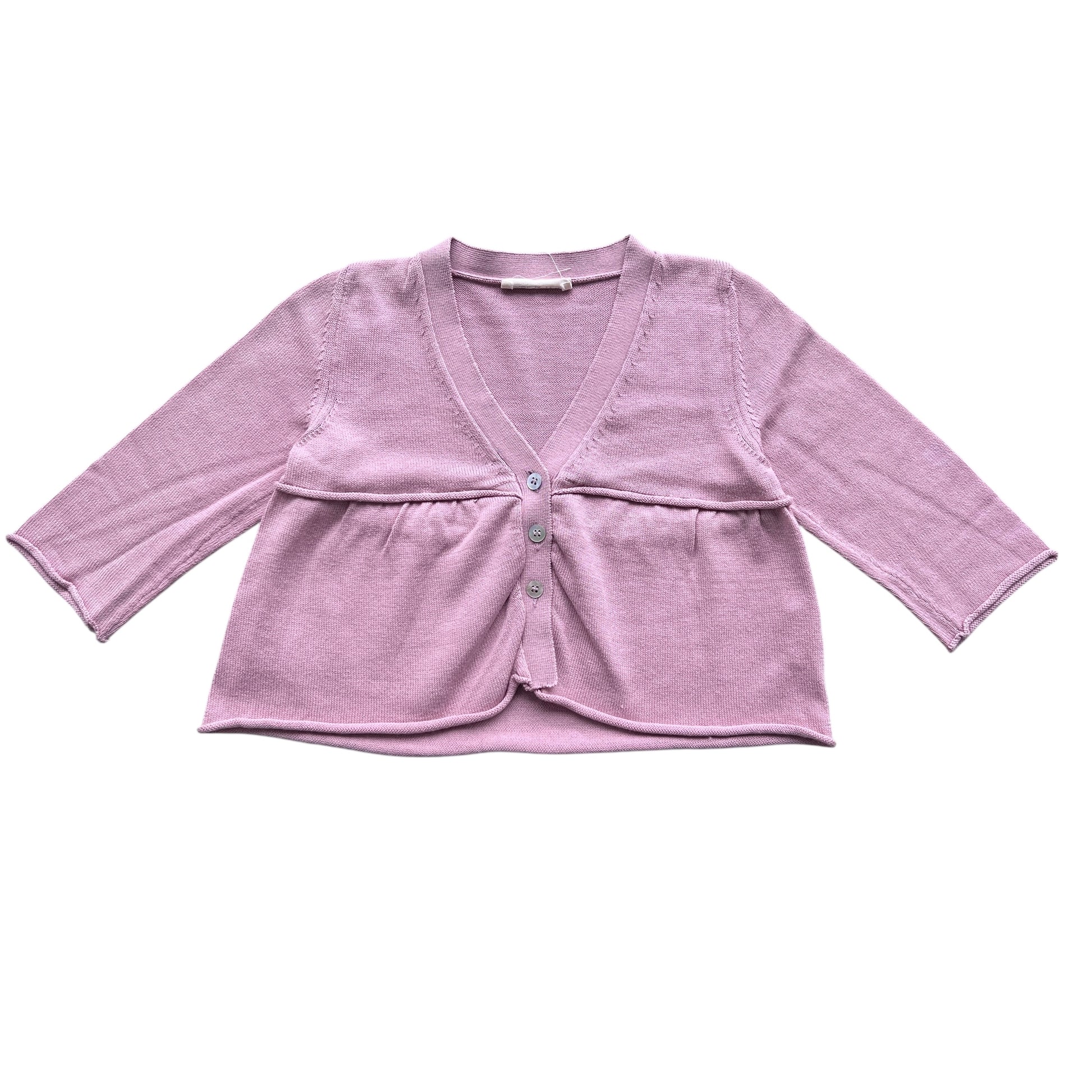 Cardigan Babe & Tess per bambina di 12 mesi, in cotone leggero color rosa antico. Taglio ampio e morbido, ideale per un look romantico e confortevole. Perfetto per completare outfit primaverili o estivi con un tocco raffinato e delicato, tipico dello stile italiano del brand.