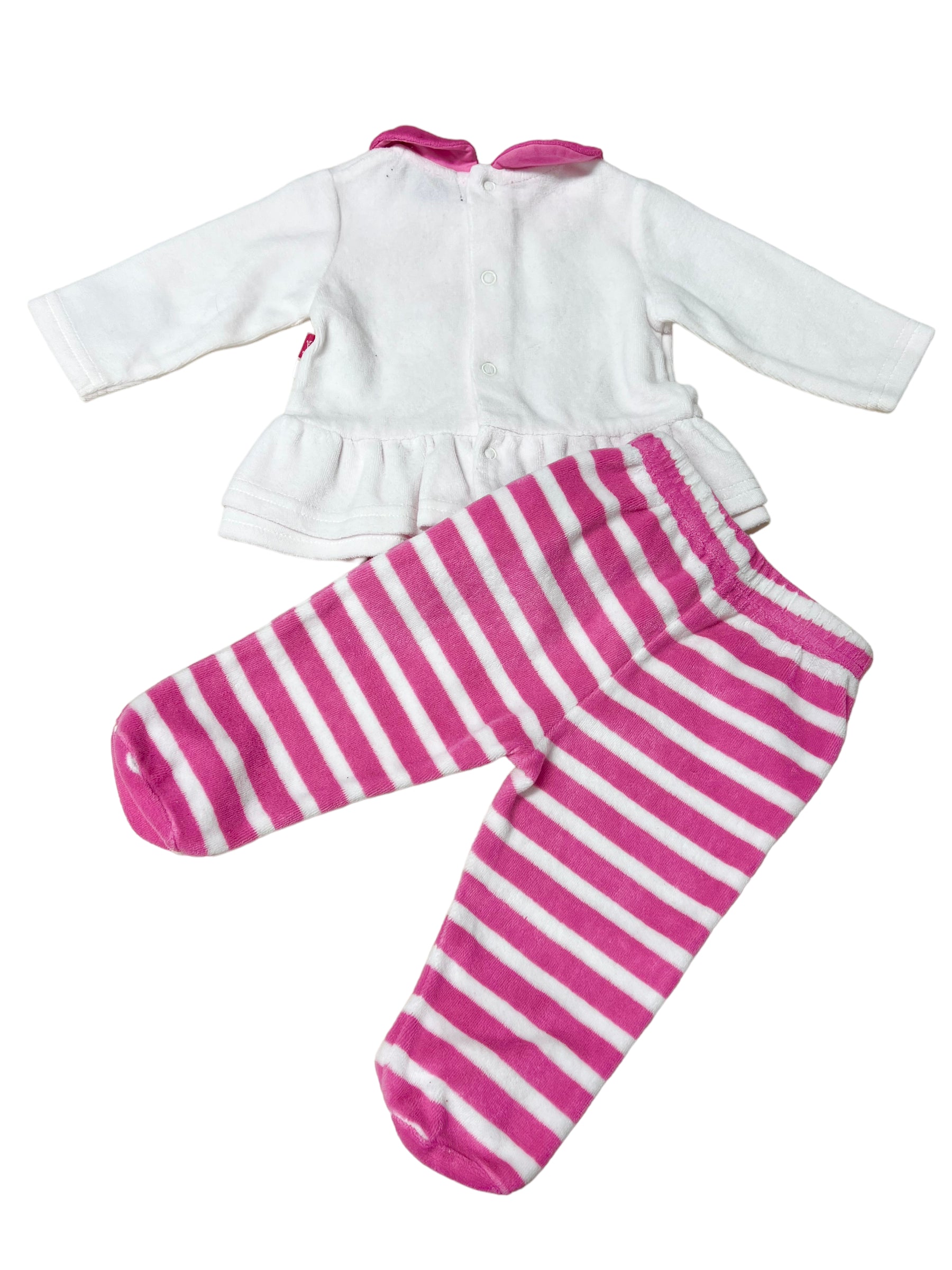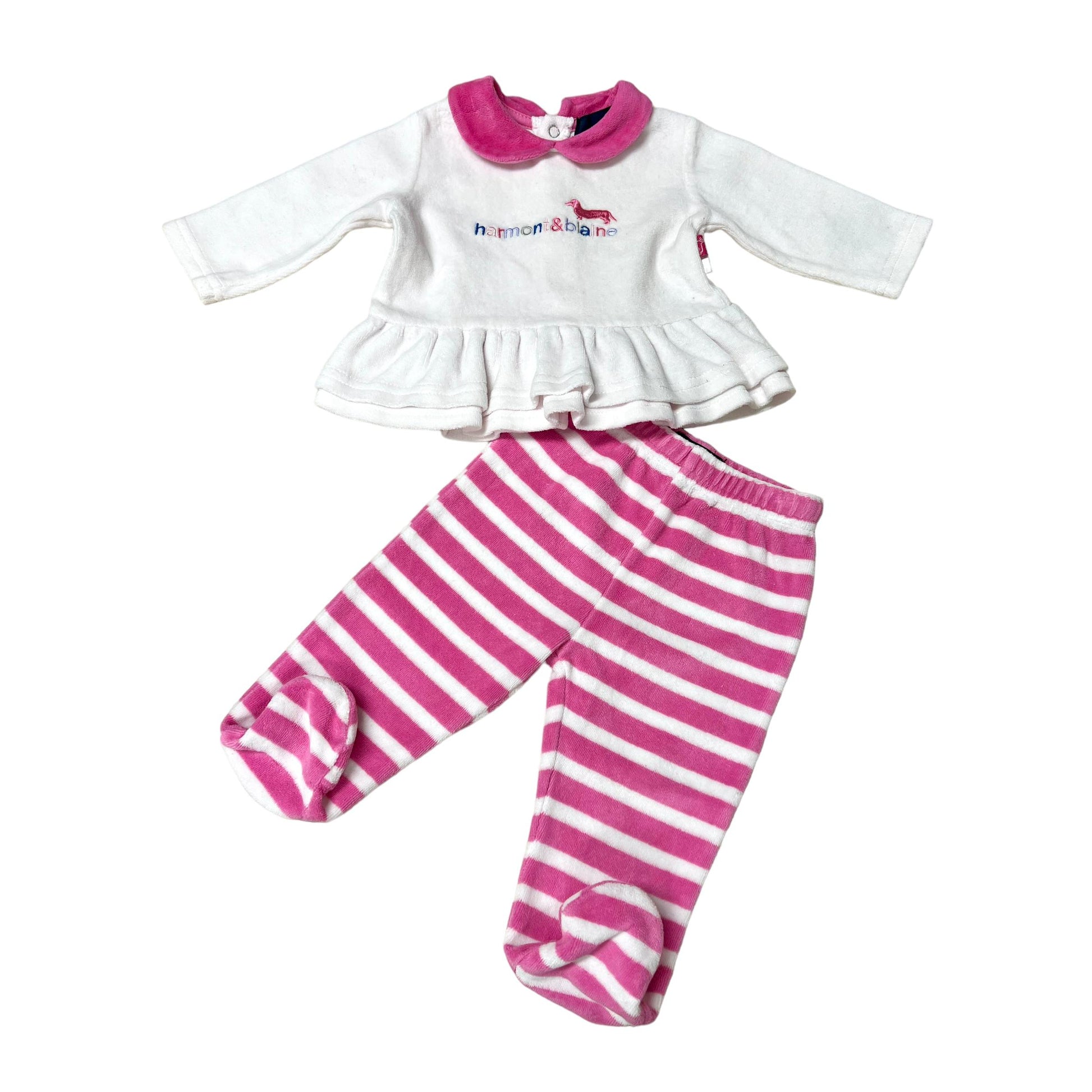 Il set in ciniglia Harmont & Blaine bianco e fucsia è un'opzione comoda e alla moda per la tua piccola. Con la ciniglia morbida, offre comfort senza rinunciare allo stile. I colori vivaci aggiungono un tocco giocoso, perfetto per le giornate informali o divertenti avventure. Taglia 1 mese