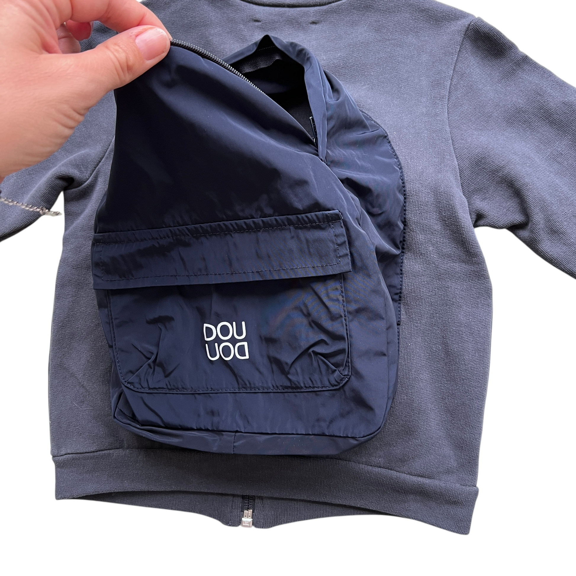 Felpa DOUUOD per bambino di 3 anni, full zip con girocollo e design innovativo: uno zainetto integrato sulla schiena, perfettamente funzionale e abbinato al capo. Realizzata in felpa morbida e confortevole, è perfetta per un look pratico e originale. Un capo divertente, unico e funzionale per ogni giorno.