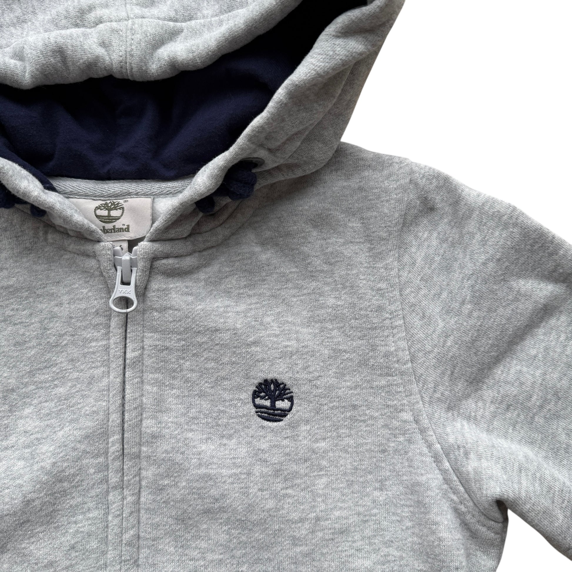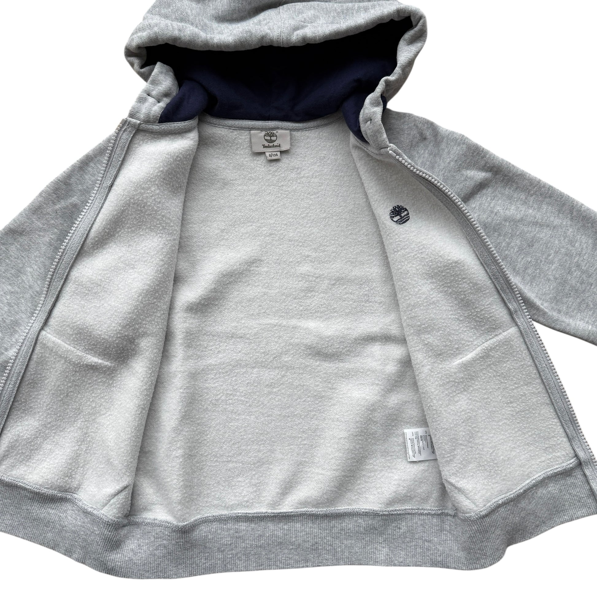 Felpa full zip con cappuccio Timberland, taglia 8 anni, in grigio chiaro mélange con dettagli blu. Interno felpato, caldo e morbido, pensato per garantire comfort e praticità nelle giornate più fresche. Un capo sportivo e versatile, ideale per l’uso quotidiano. Capo usato in ottime condizioni, disponibile e pronto per l’invio.