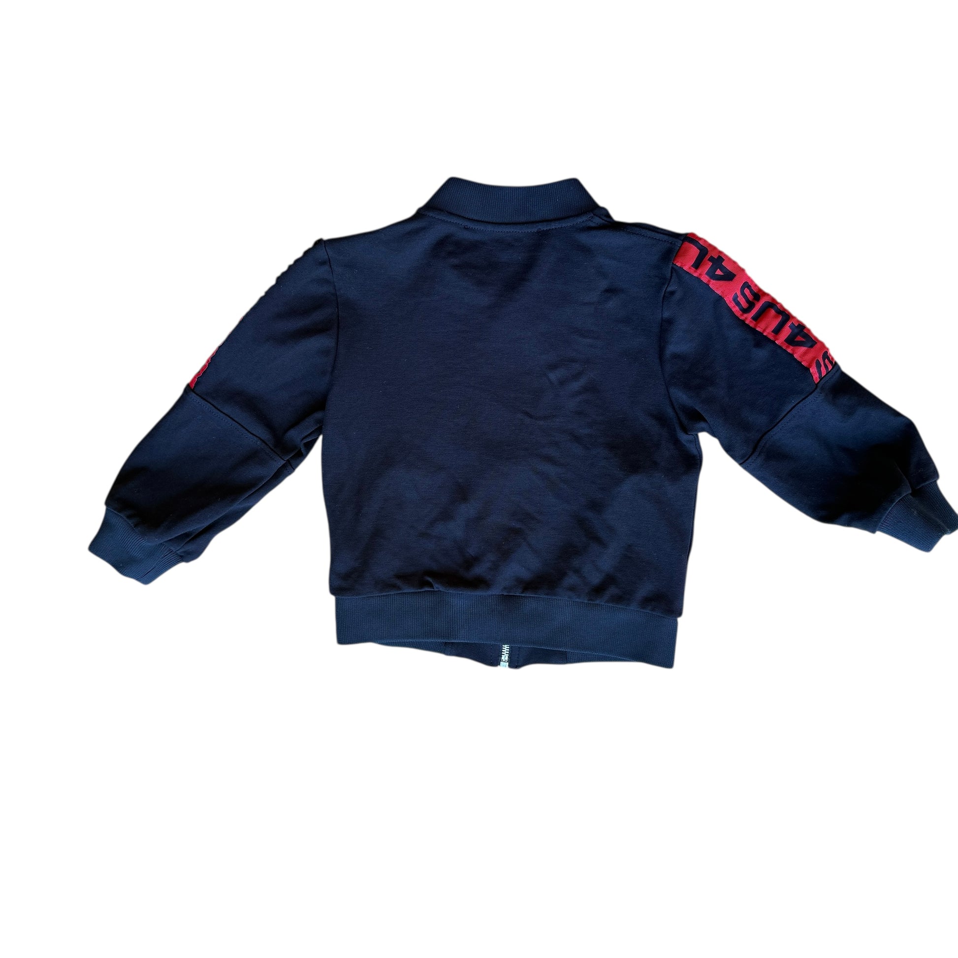 Grintosa e raffinata, questa felpa full zip Paciotti è realizzata in morbido cotone garzato, ideale per garantire calore e comfort nelle mezze stagioni. Il design total black è impreziosito dall'iconico logo ricamato in rosso sul petto e dalle bande logate lungo le braccia, che aggiungono un tocco sportivo e contemporaneo. La chiusura frontale con zip e il taglio girocollo la rendono un capo pratico, perfetto per i piccoli che non rinunciano allo stile.