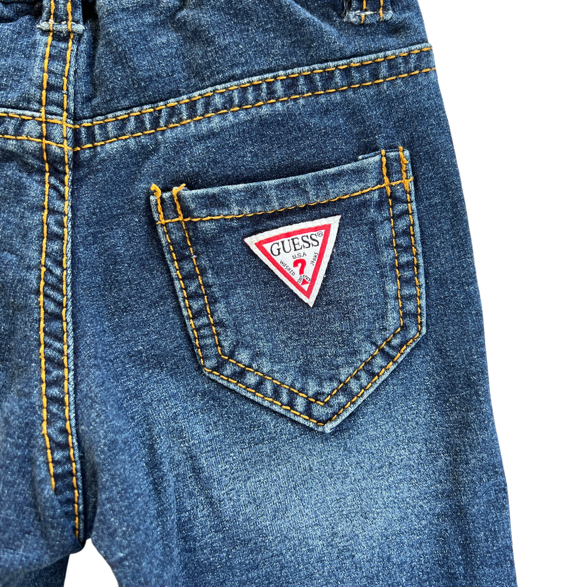 Jeans elasticizzati Guess unisex per neonati di 3/6 mesi, estremamente morbidi e confortevoli. Realizzati in tessuto elasticizzato di alta qualità, offrono massima libertà di movimento e vestibilità perfetta. Ideali per un look casual e moderno sin dai primi mesi, assicurano praticità e stile quotidiano.