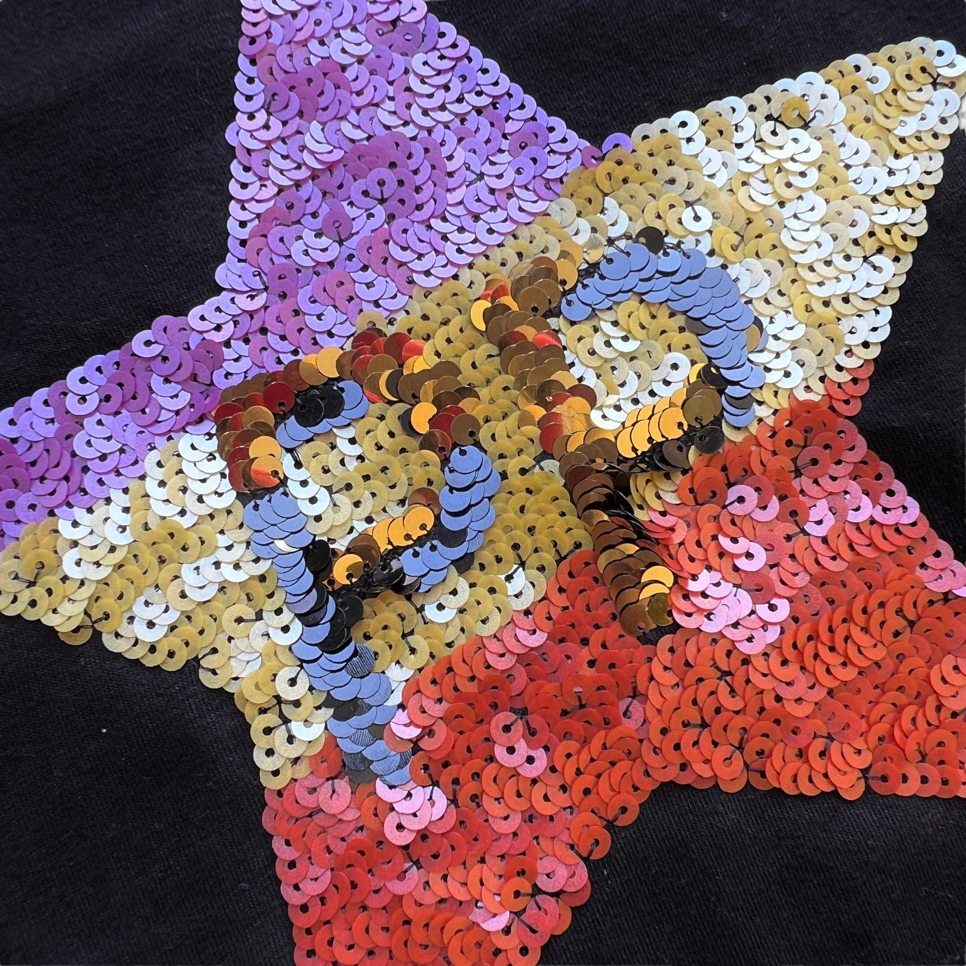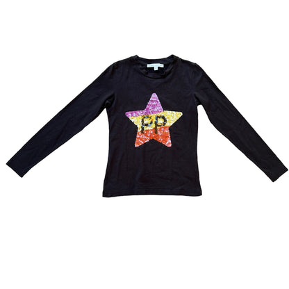 Maglia a manica lunga Patrizia Pepe per bambina di 7/8 anni, in un elegante nero con una stella colorata centrale e monogramma girabrilla. Questo capo unico combina comfort e stile, con un effetto scintillante che aggiunge un tocco di magia al look, ideale per outfit creativi e originali.