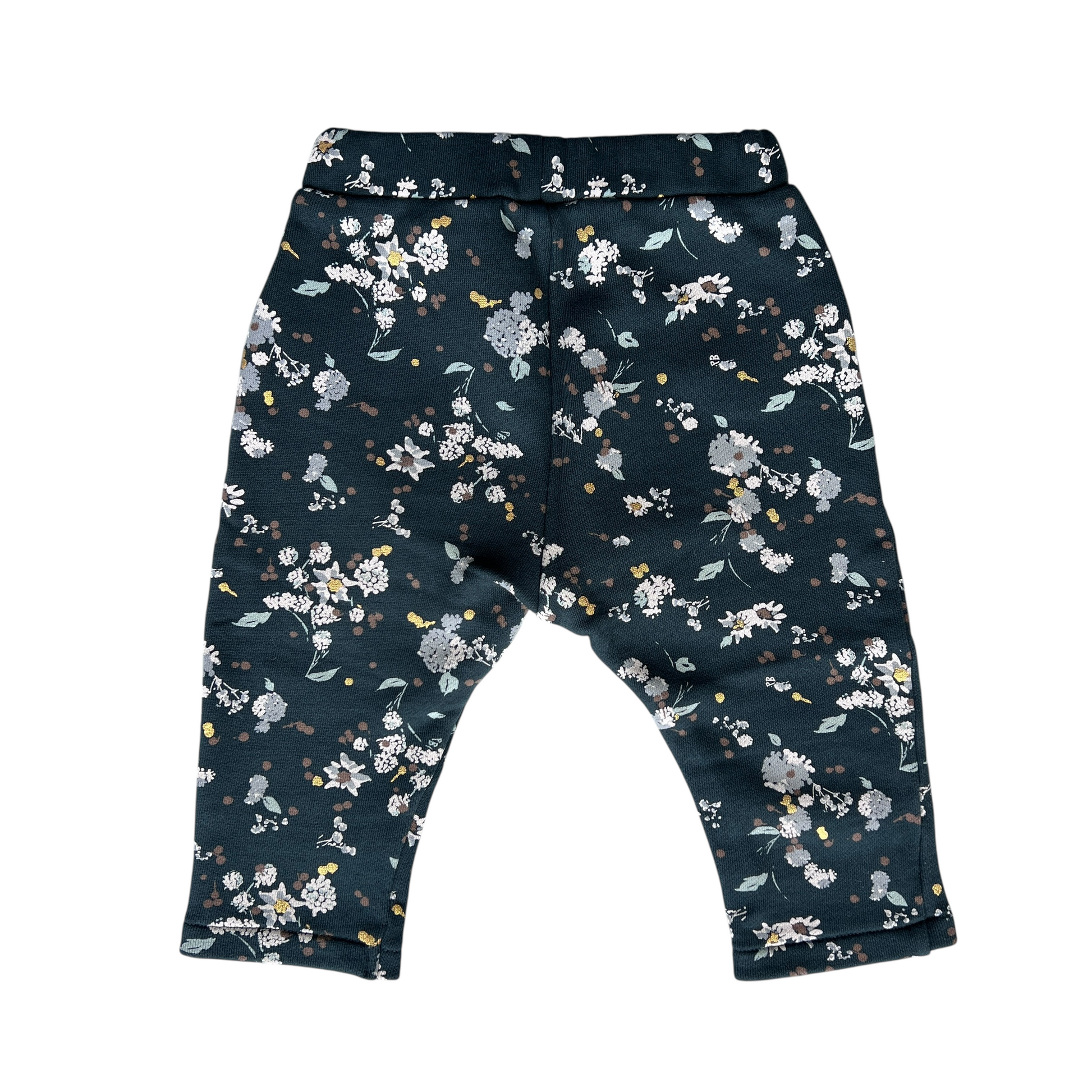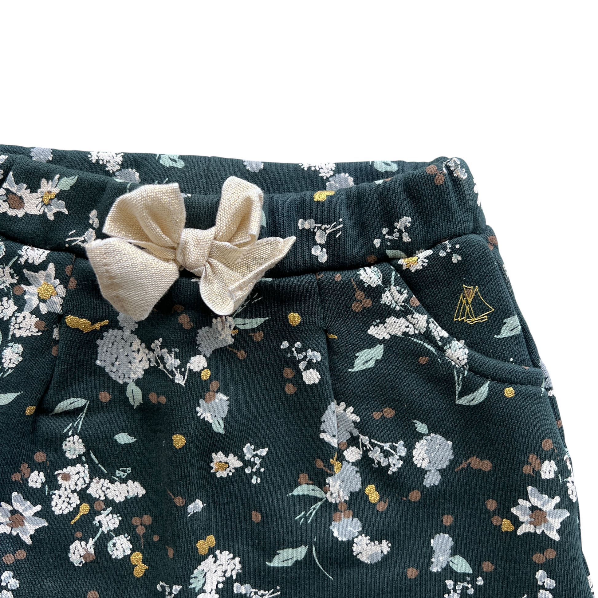 Pantaloni Petit Bateau per bambina di 12 mesi, in felpa morbida e calda color verde scuro. Decorati con una delicata fantasia floreale panna e piccoli dettagli dorati. Vita elasticizzata per il massimo comfort. Perfetti per un look pratico ma raffinato, ideale per ogni giorno con un tocco di dolcezza e stile.