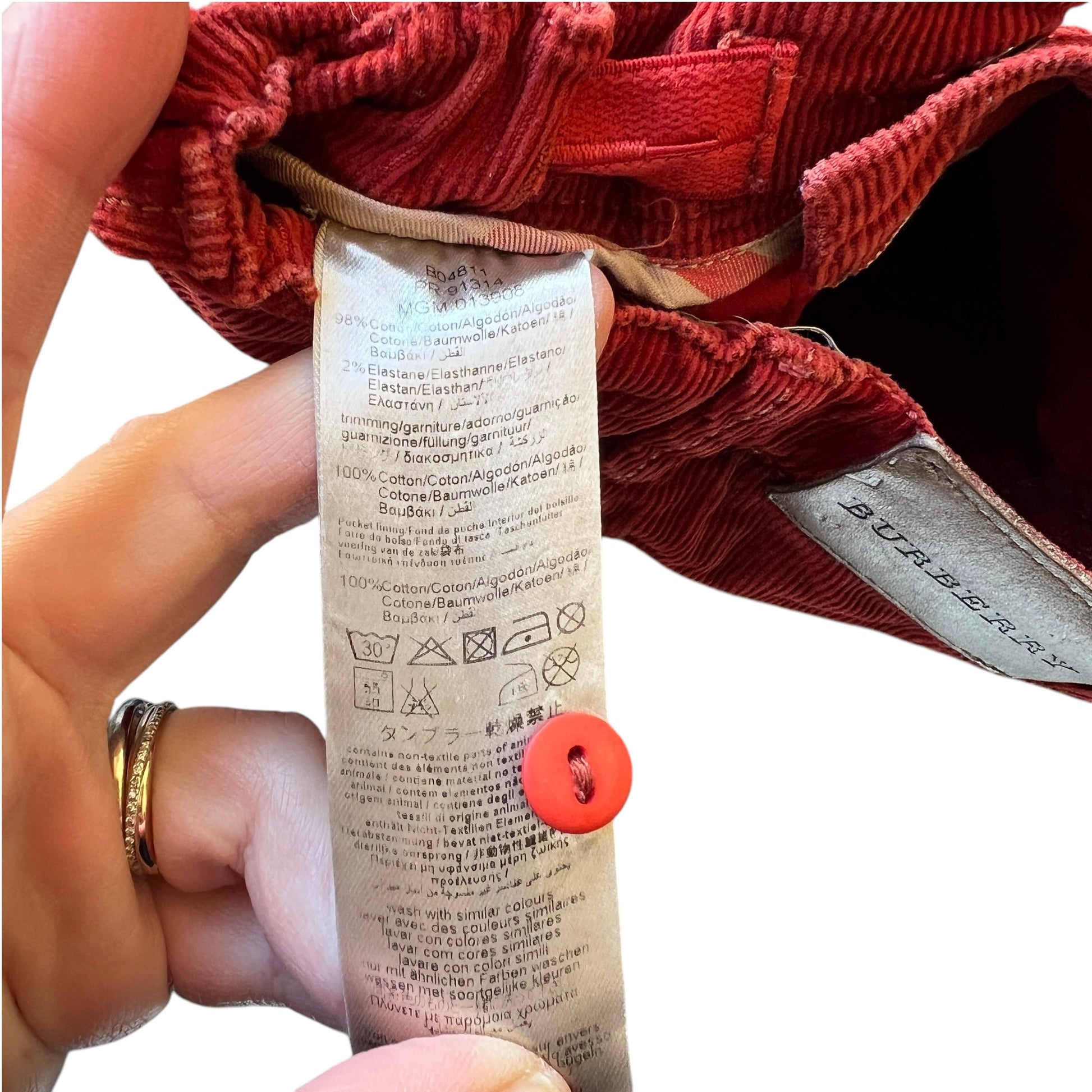 Pantaloni micro velluto color mattone Burberry - 9 mesi