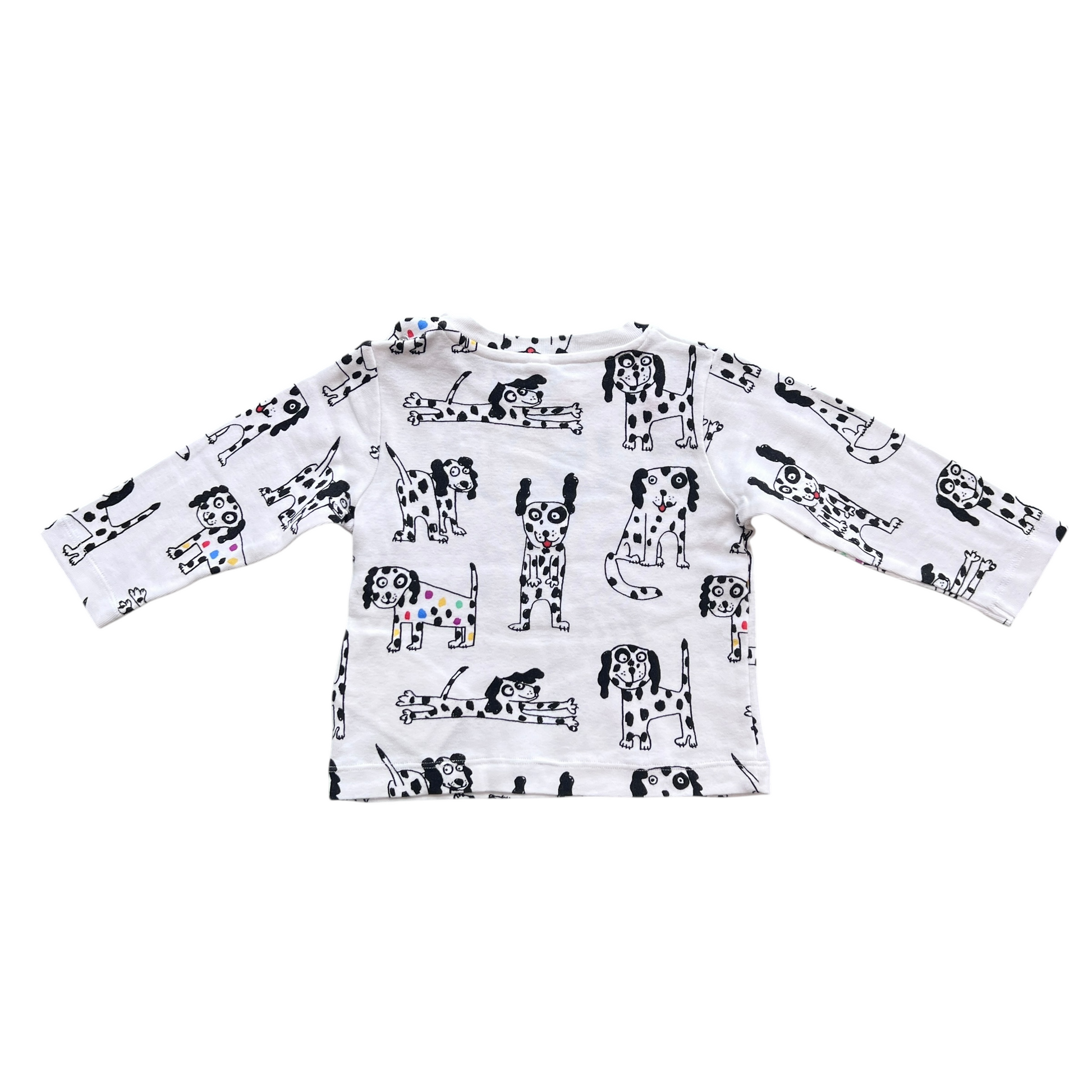 Pigiama Stella McCartney per neonato/a di 9 mesi, composto da maglia a manica lunga e pantaloni coordinati in morbido cotone biologico. Entrambi i pezzi sono decorati con una simpatica stampa di cagnolini, per un look divertente anche durante la nanna. Comodo, delicato sulla pelle e perfetto per un sonno sereno con stile.