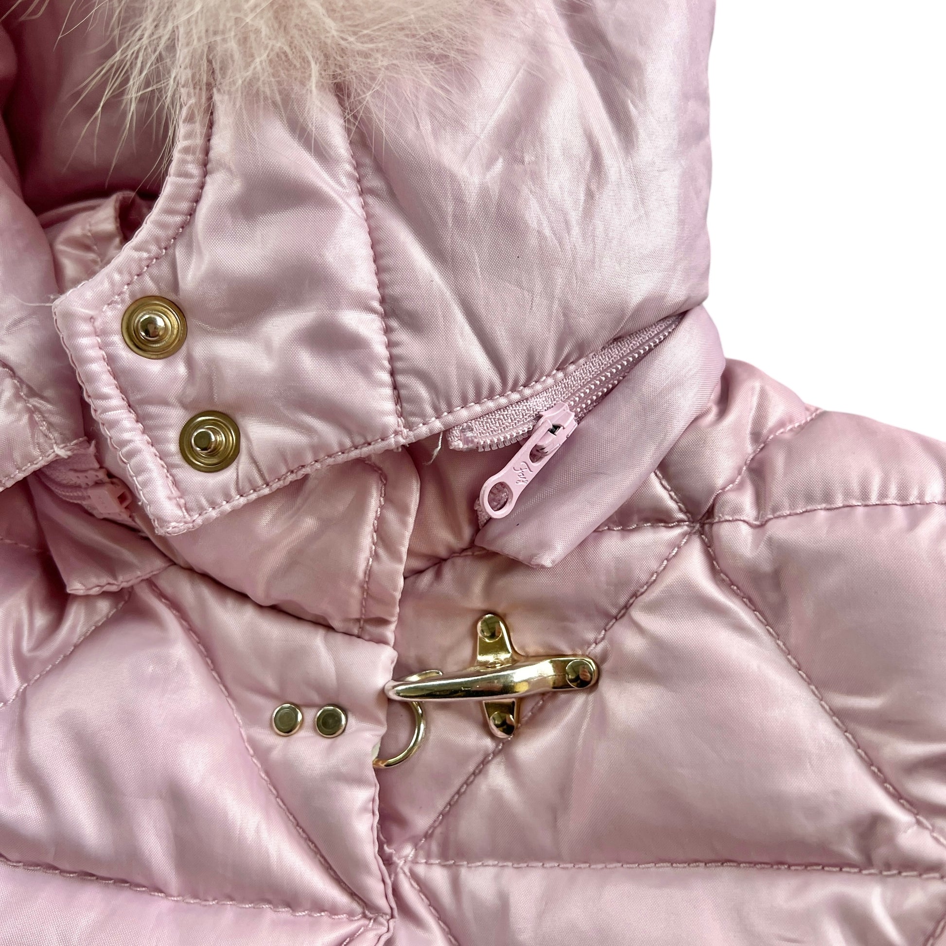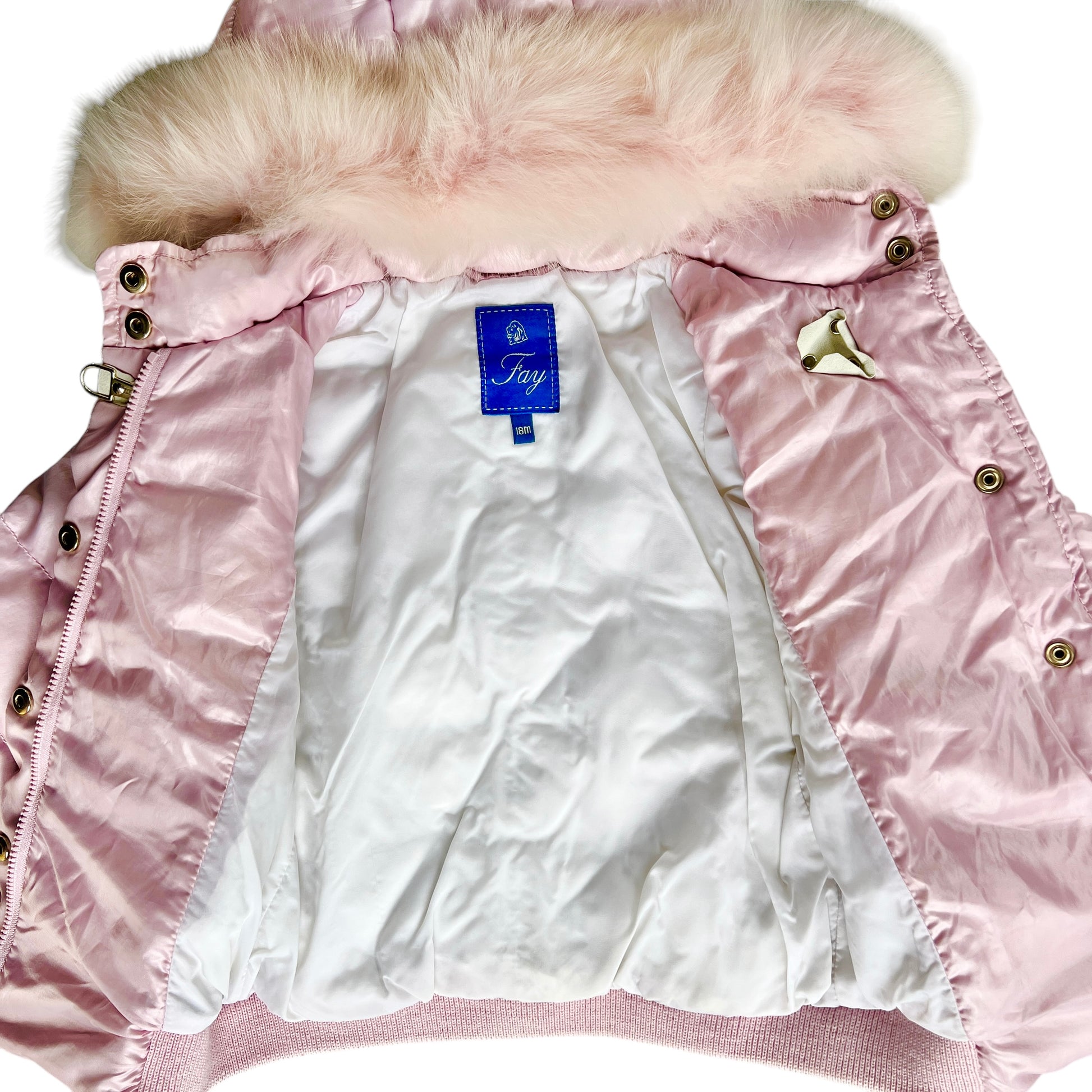 Piumino Fay per bambina di 18 mesi, con cappuccio con pelo staccabile e design pratico. Realizzato con finitura esterna semilucida, offre un look moderno e raffinato. Imbottitura calda e confortevole, ideale per i mesi più freddi. Chiusura con zip e bottoni, perfetto per proteggere le più piccole con stile.