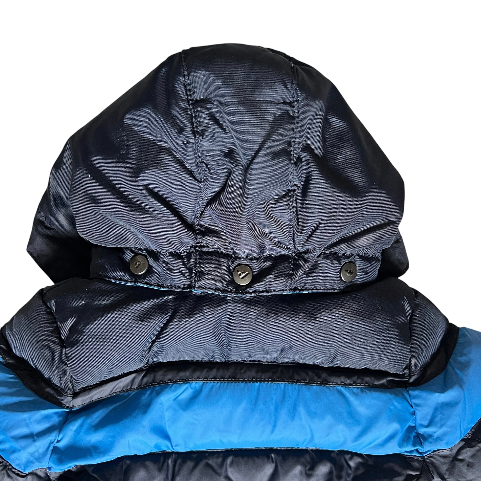 Elegante e funzionale, il piumino invernale Armani Baby per 3 mesi è perfetto per proteggere i più piccoli dal freddo. Di colore blu scuro, presenta una distintiva fascia blu Cina e un cappuccio staccabile per maggiore versatilità . Caldo e confortevole, unisce stile e praticità per ogni occasione.