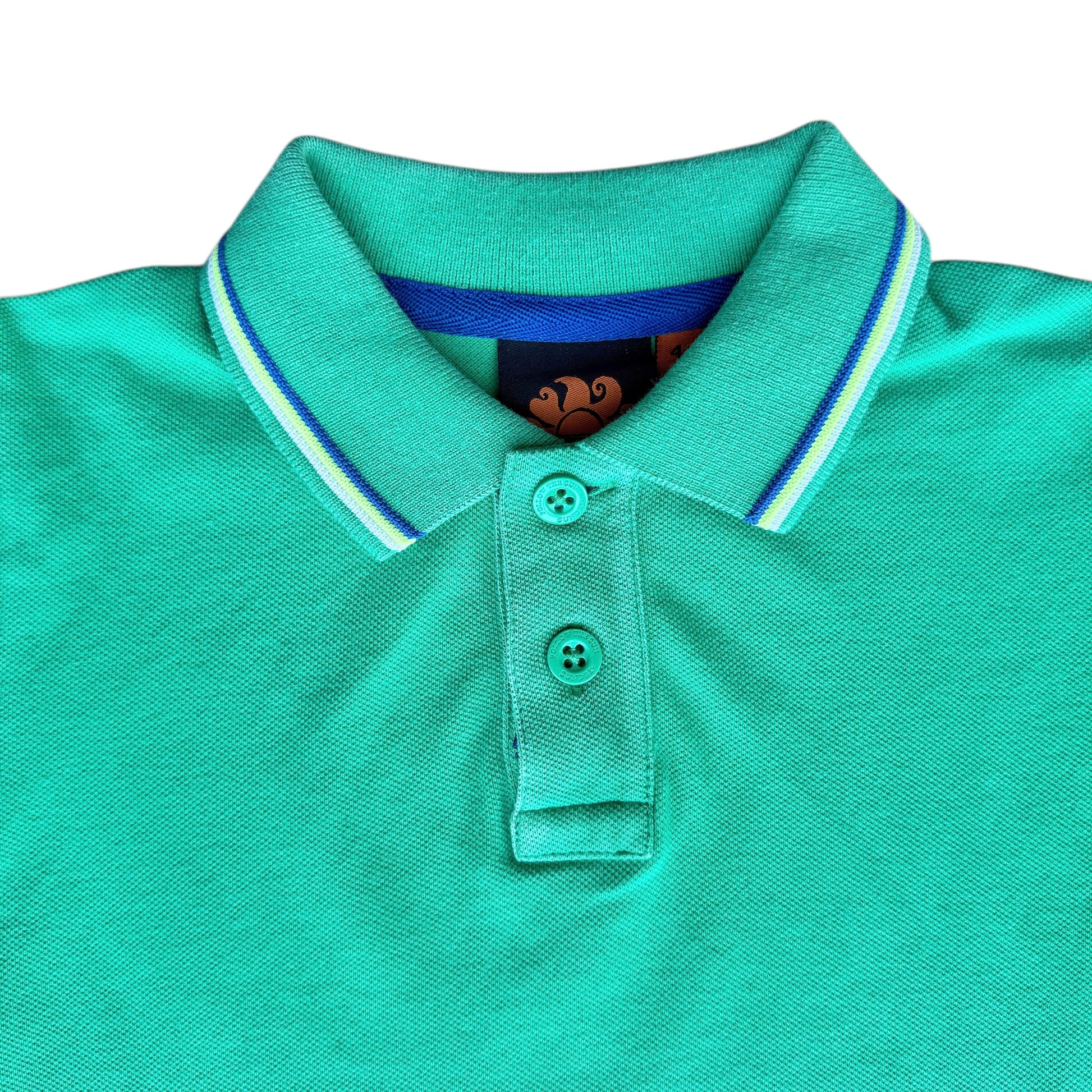 Polo a manica corta Sundek, taglia 4 anni, colore verde brillante con bordi fluo su colletto e maniche. Fresca, leggera e confortevole, ideale per la stagione estiva e il tempo libero. Stile sportivo e vivace. Capo usato in ottime condizioni con leggera scoloritura nella zona dei bottoni, pezzo unico pronto alla spedizione.