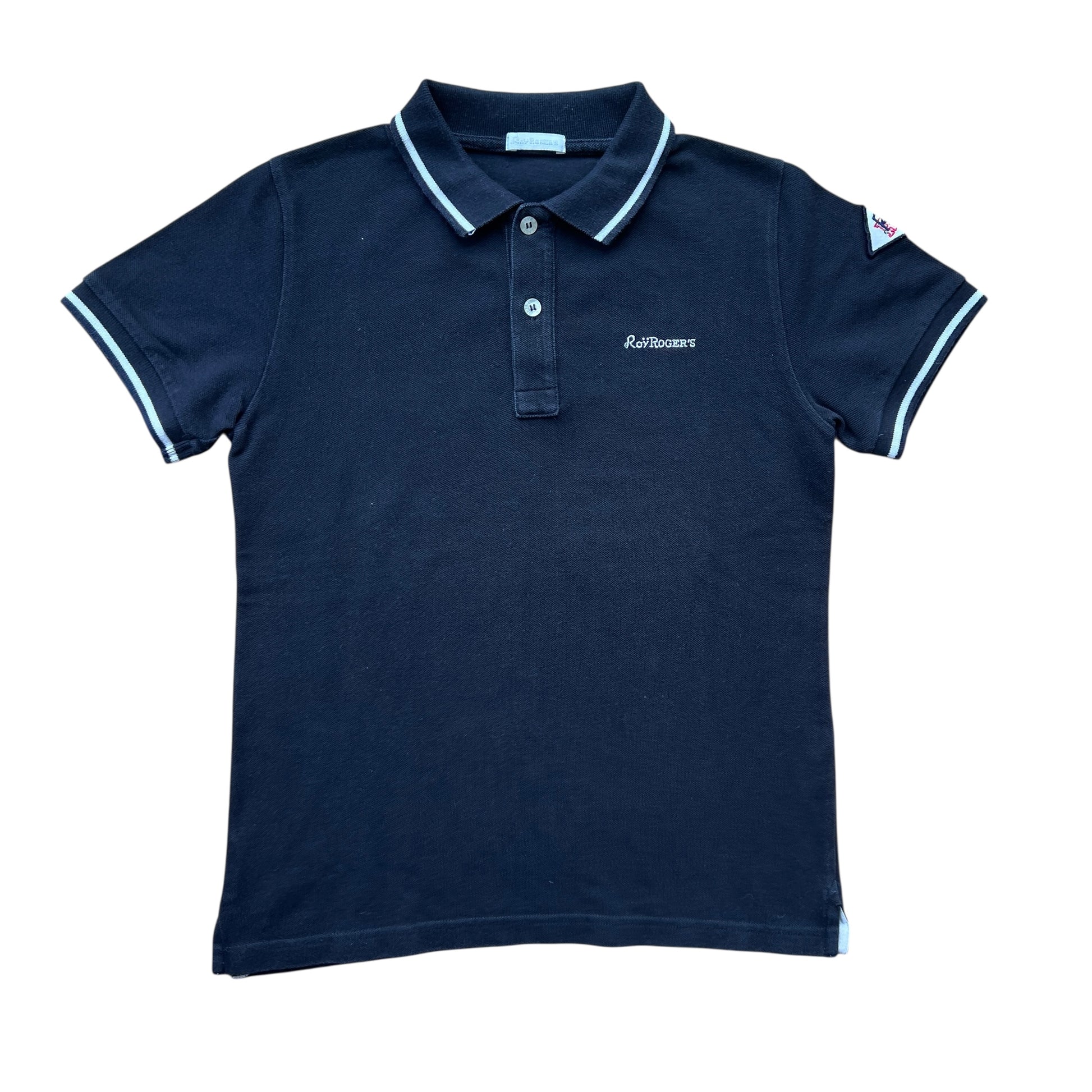 Polo Roy Roger's per bambino di 10 anni, in morbido cotone nero con eleganti profili bianchi a contrasto su colletto e maniche. Taglio classico con chiusura a bottoni e logo discreto. Versatile e raffinata, perfetta per look casual curati o per occasioni più formali con un tocco sportivo.