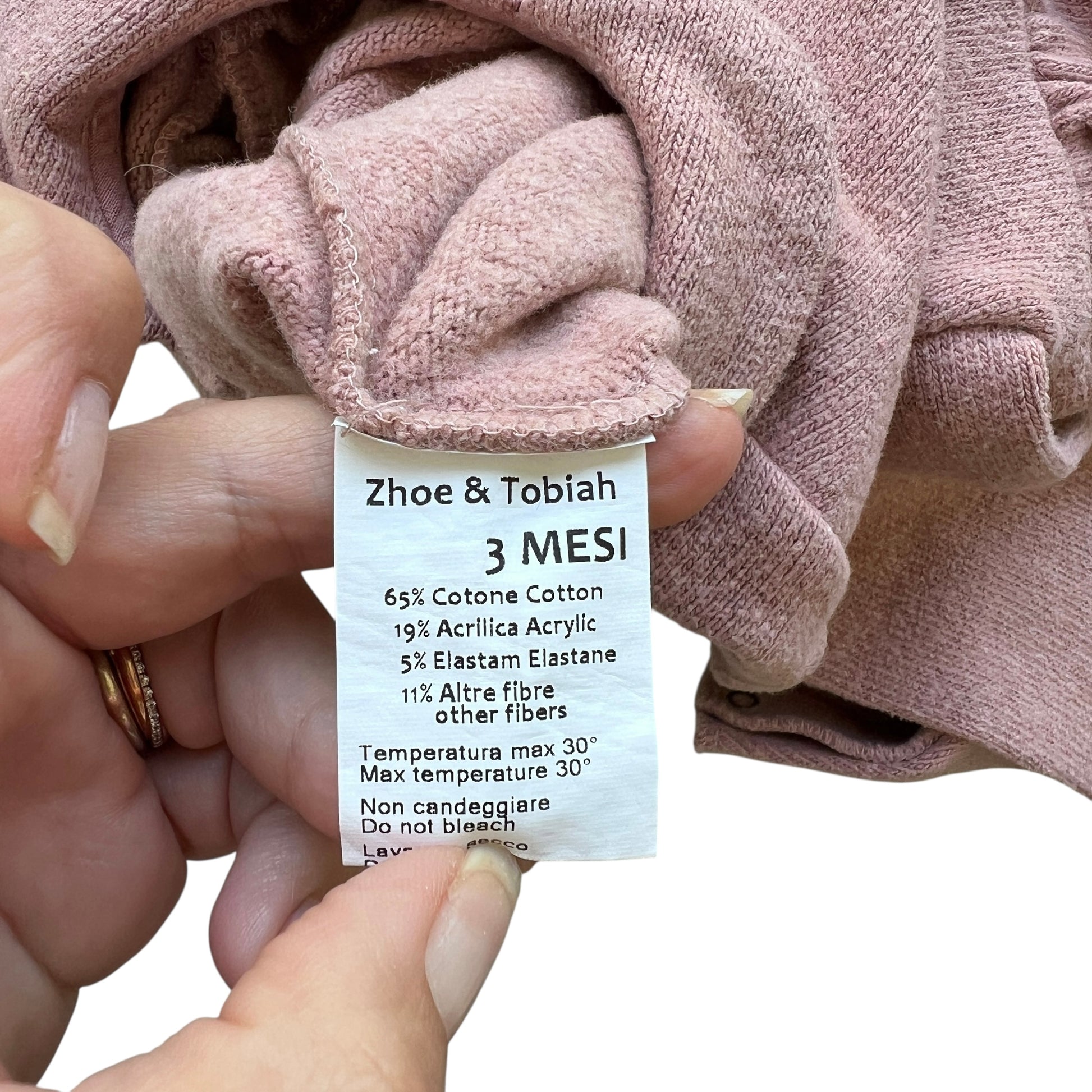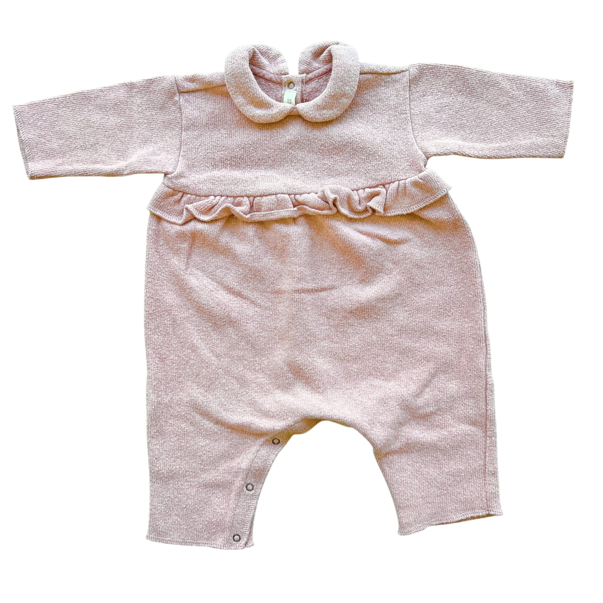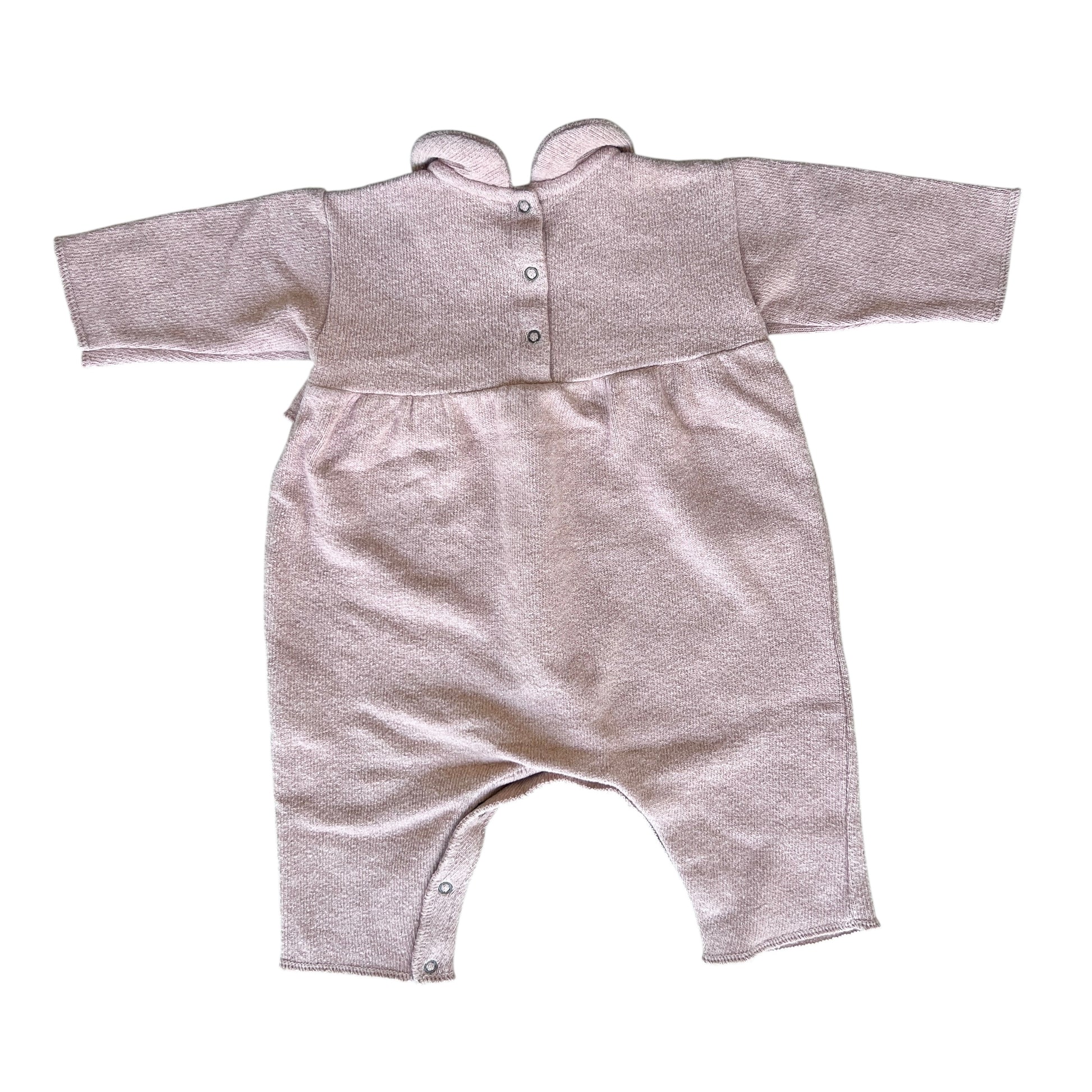Tutina Zhoe & Tobiah per neonata di 3 mesi, in morbido caldo cotone rosa antico. Colletto rotondo delicato e rouches frontali che aggiungono un tocco romantico ed elegante. Morbida e confortevole, ideale per la stagione più fresca. Perfetta per un look raffinato e coccoloso fin dai primi giorni.