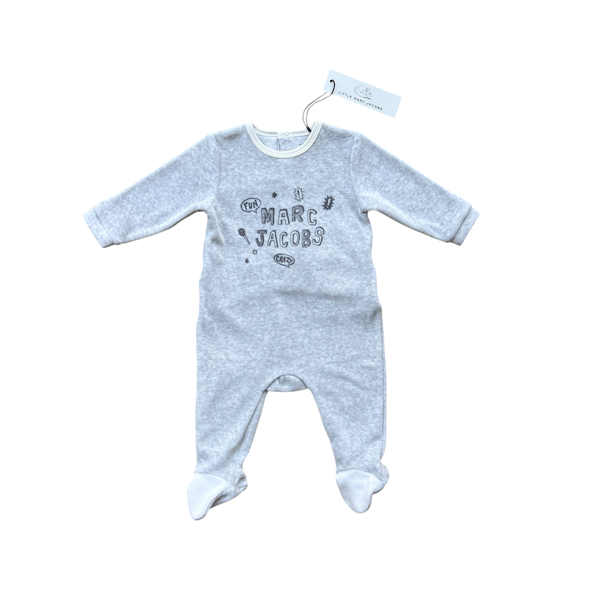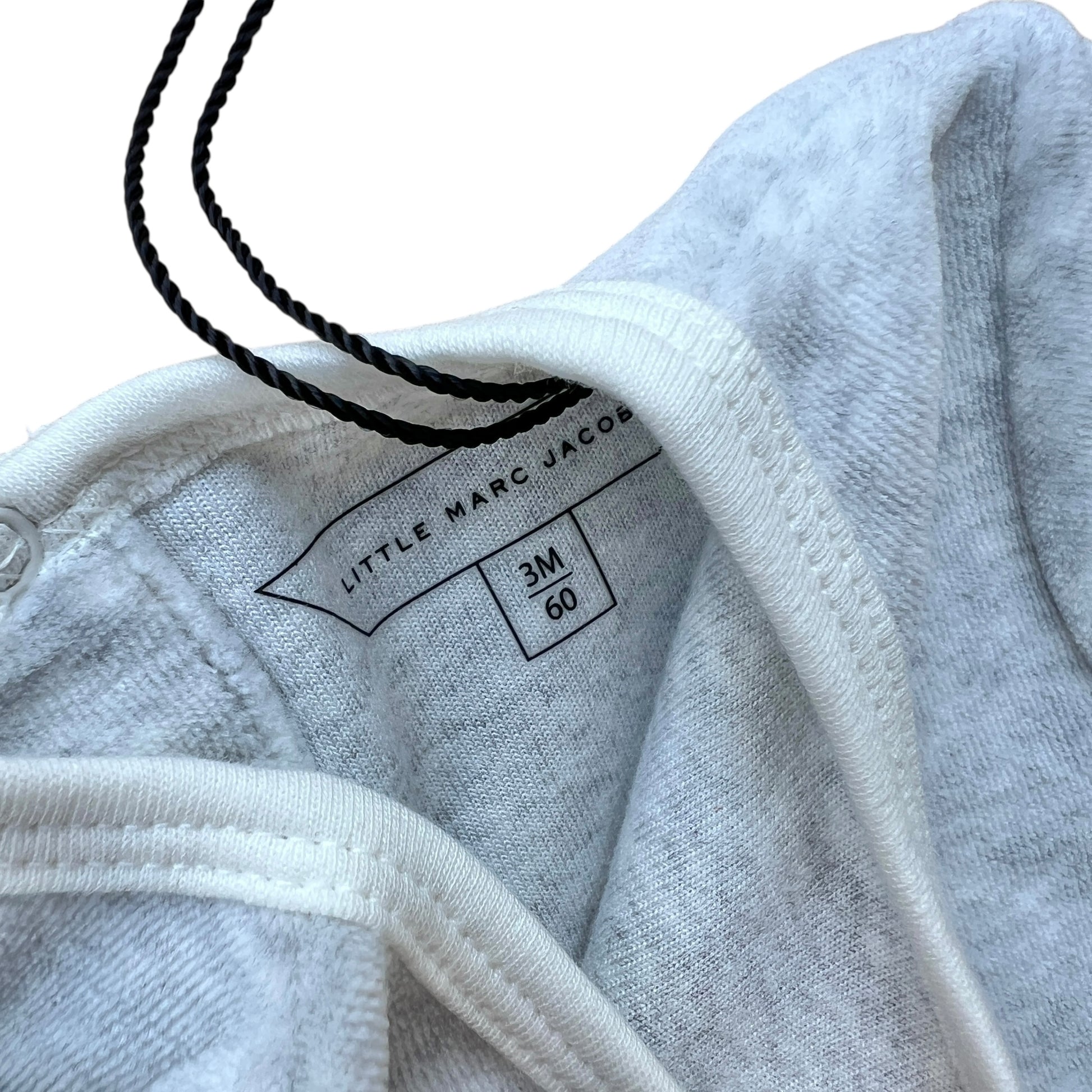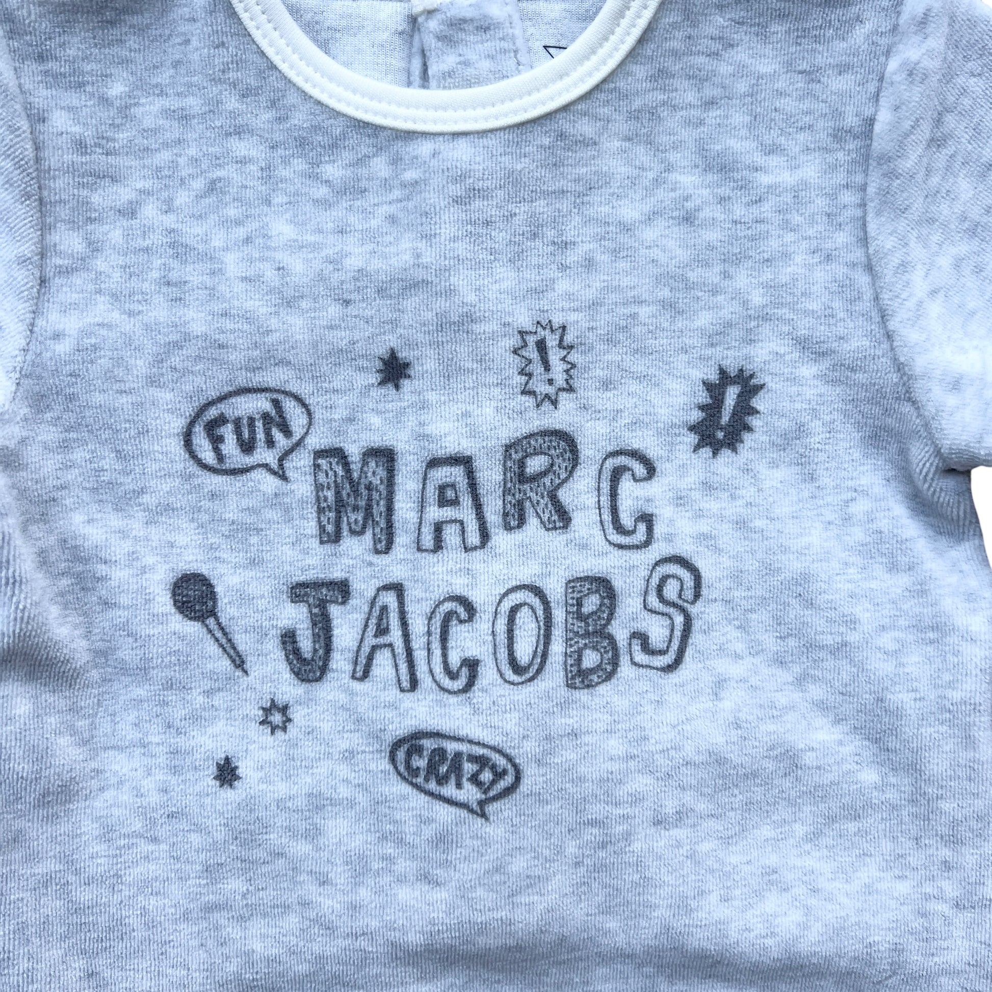 Tutina in ciniglia Marc Jacobs per neonato/a di 3 mesi, in grigio chiaro melange. Decorata con simpatici disegni e logo frontale, aggiunge un tocco giocoso e moderno. Bottoni sulla schiena per facilitare il cambio. Morbida, calda e confortevole, perfetta per coccolare con stile i più piccoli.
