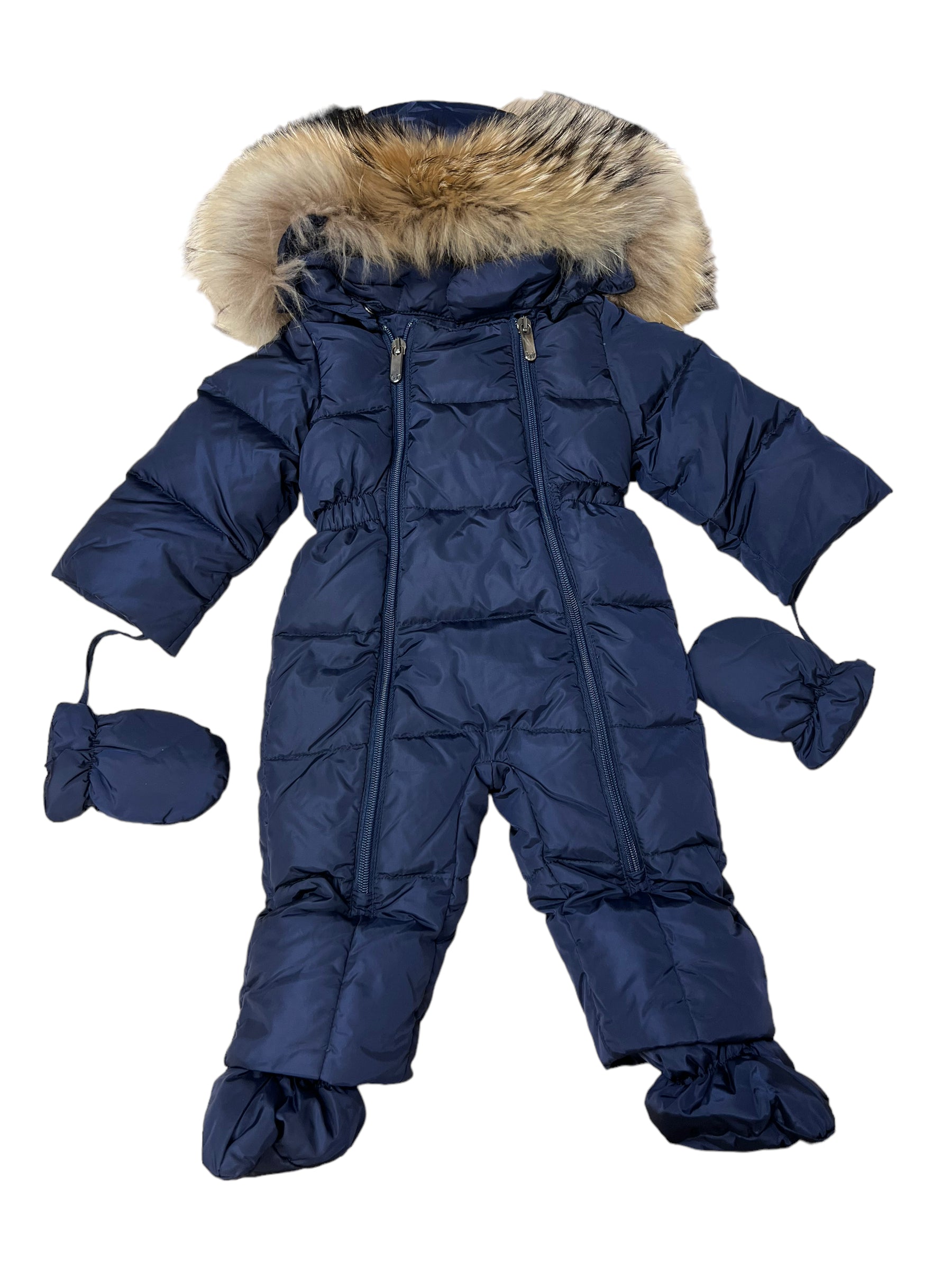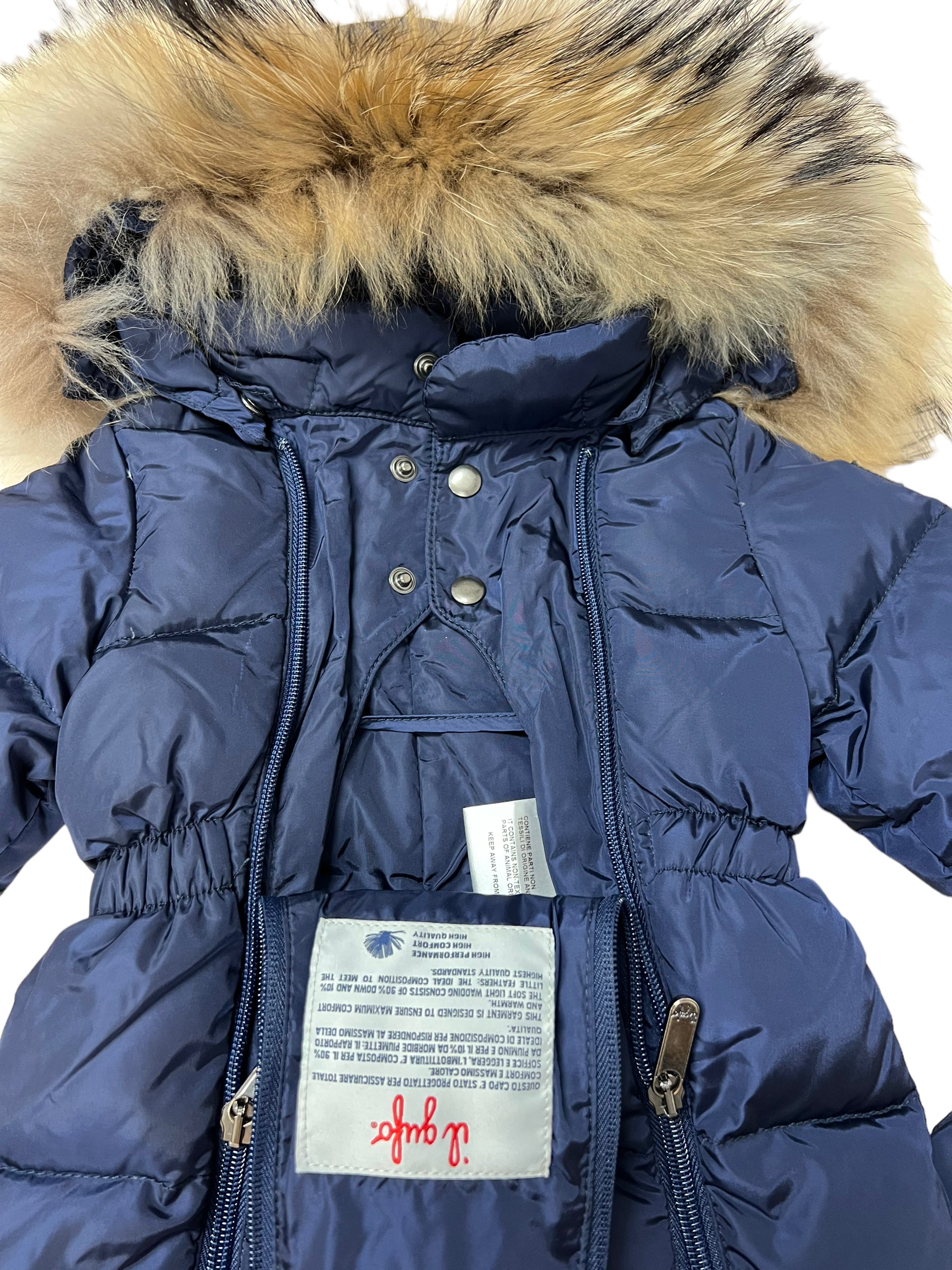 Questa tutona da neve Il Gufo è una scelta eccezionale per mantenere il tuo piccolo al caldo durante l'inverno. Questo capo è imbottito con vera piuma (90% piumino, 10% piuma) per un'isolamento termico superiore. Il cappuccio removibile con pelo aggiunge un tocco di lusso, mentre le maniche lunghe e la doppia cerniera frontale facilitano l'indossamento. Le muffole e le babbucce removibili offrono versatilità e comfort. Il tuo bambino sarà avvolto in calore e stile. Taglia 6 mesi